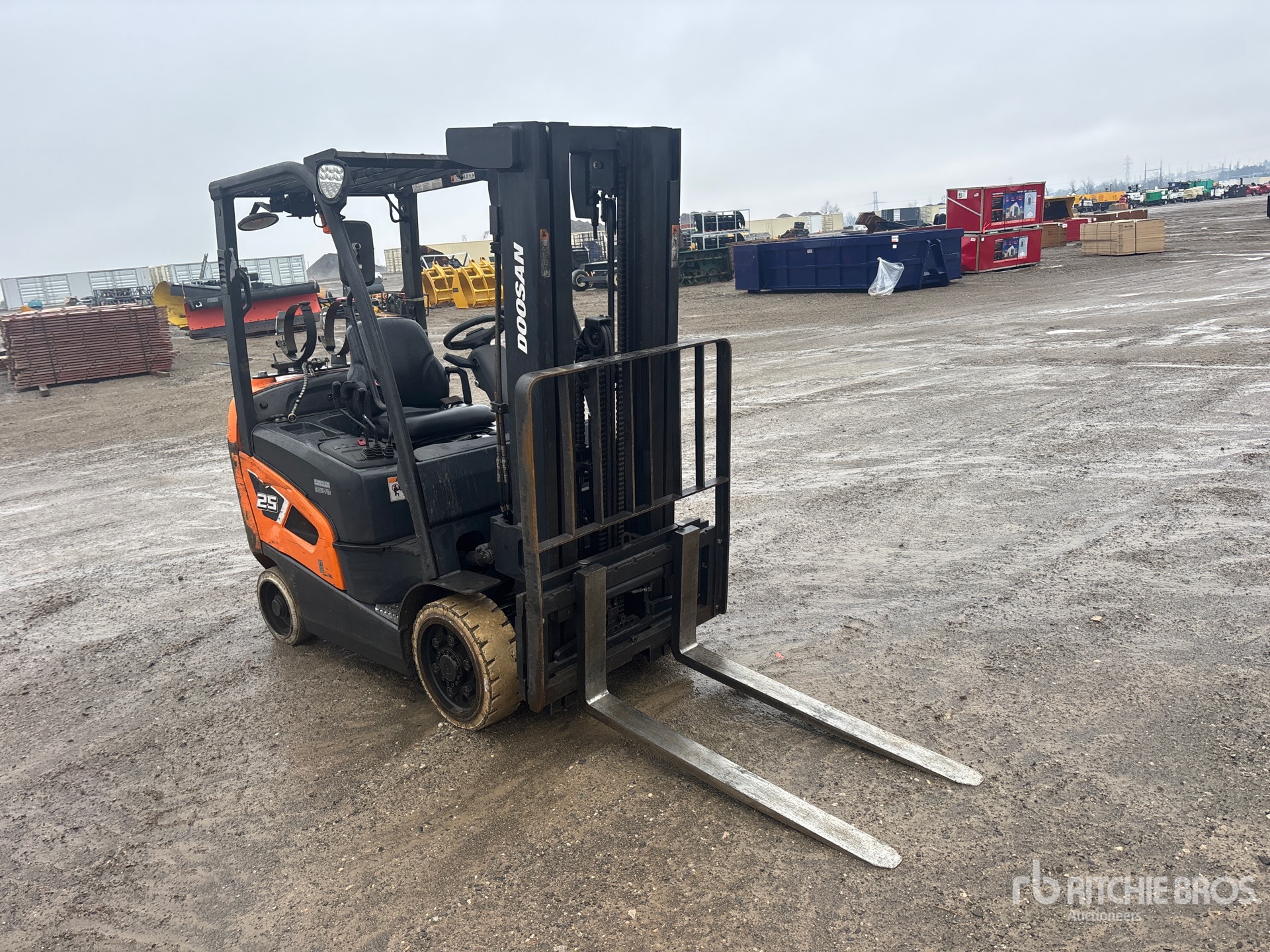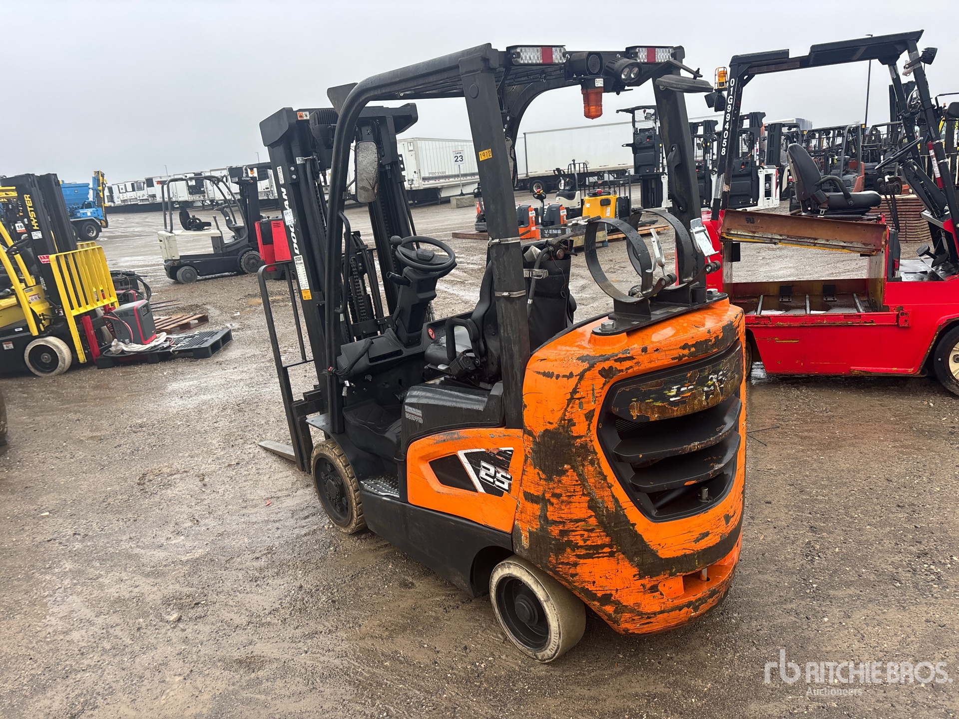 3 Stage Mast, 189 in Max Lift Height, 80 in Lowered Mast Height, 48 in Forks, Side Shift, Tier 2, 2021 US EPA Label, CARB Compliant, GCT GK25 L 4 Cylinder 2.5 L LPG Engine