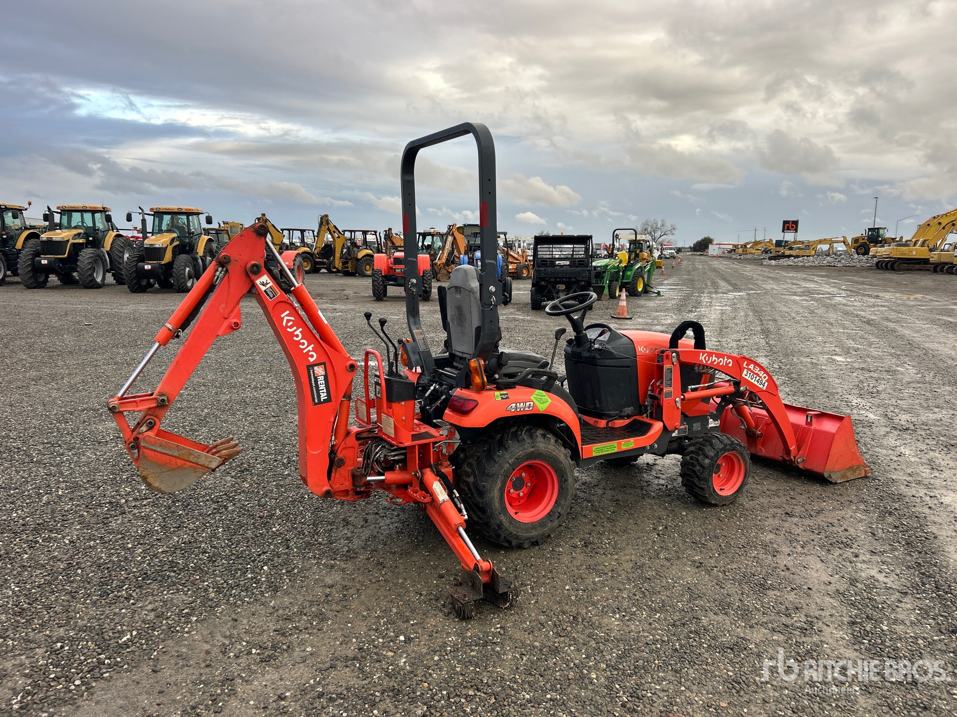 Located in Lane 1, Differential Lock, Hydrostatic Drive, 2020 US EPA Label, Kubota LA340 Loader w/Joystick, 48 in Bucket, 540 PTO, Kubota 12 in Backhoe Attachment, 17-14.00 Front Tires, 26x12.00 Rear Tires