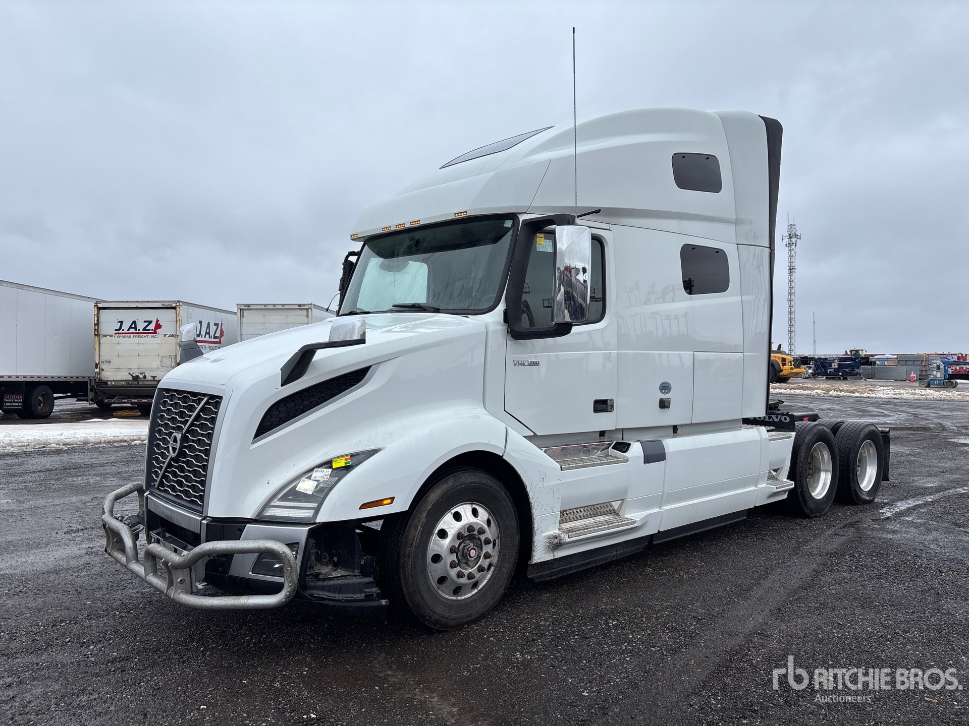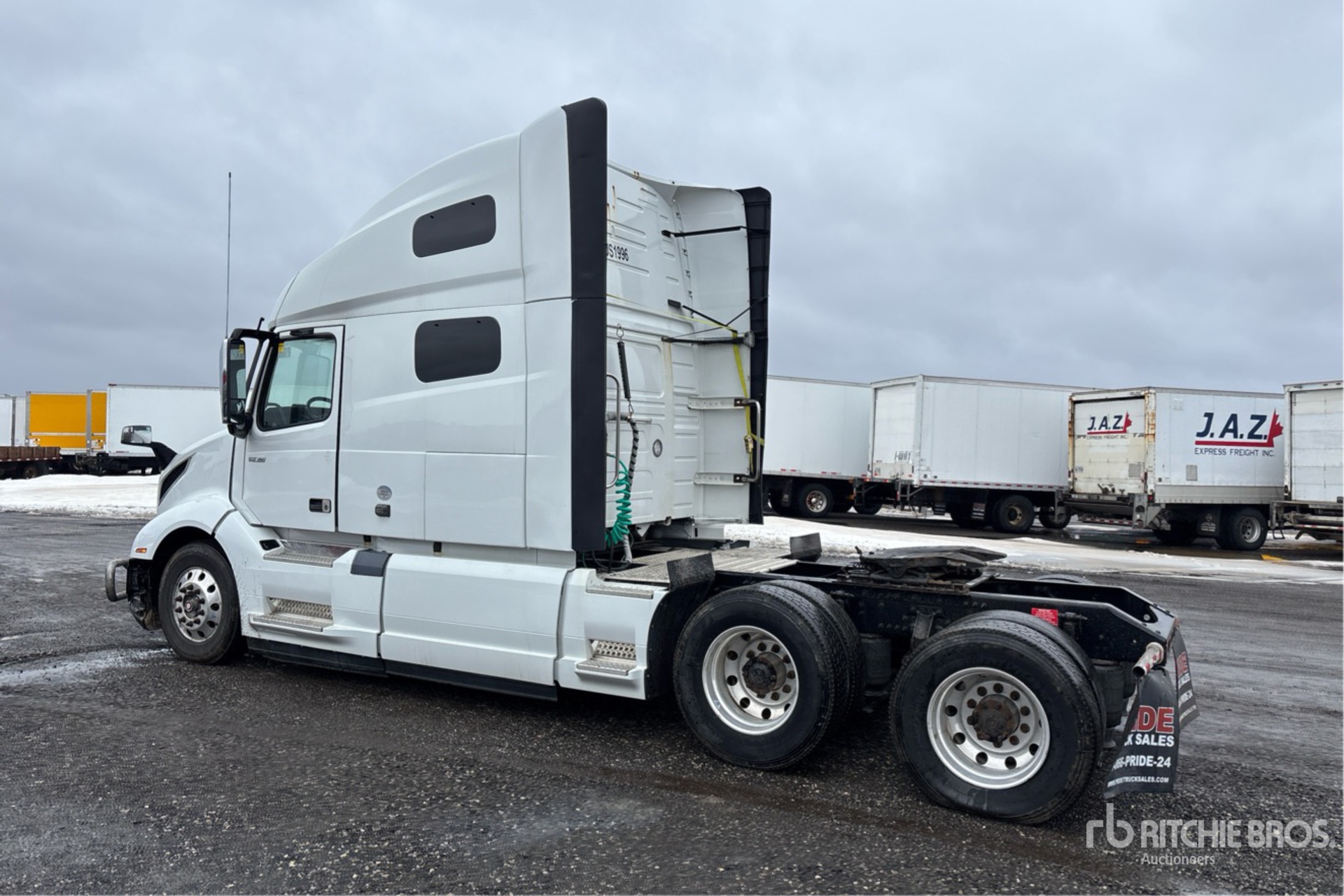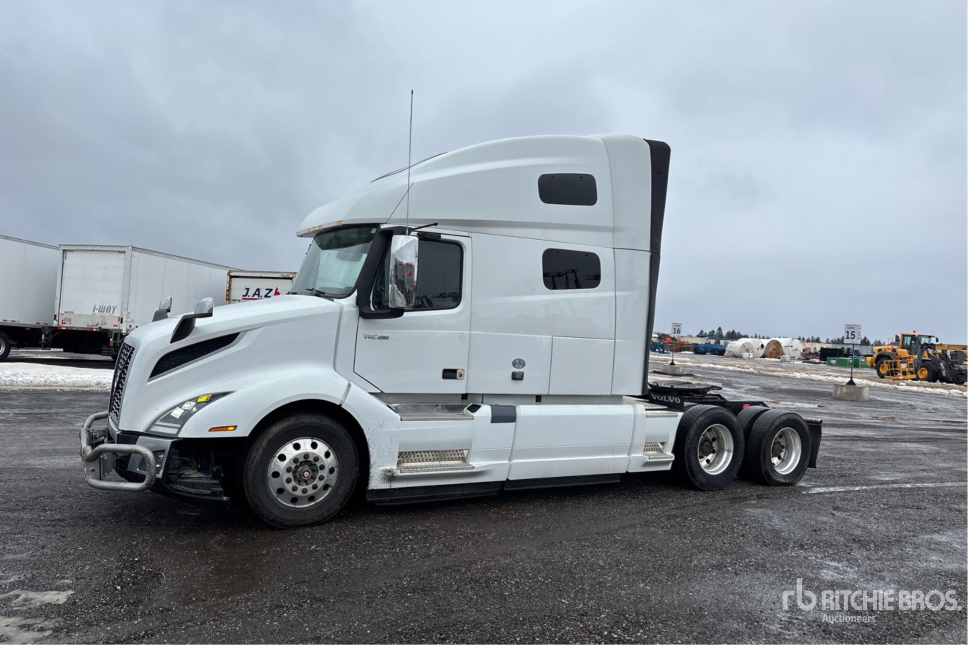 Located in Lane 8 Spot 6, Volvo Engine, 13604 Engine hrs, Volvo AT2612F 12-Speed Automated Transmission, 13200 lb Front Axle, 40000 lb Rears, 53200 lb GVWR, Engine Brake, 70 in High Rise Sleeper Cab, Bunk Heater, 217 in Wheelbase, Air Suspension, Aluminum Outer Wheels, 295/75R22.5, Air Sliding 5th Wheel, Dual Fuel Tanks