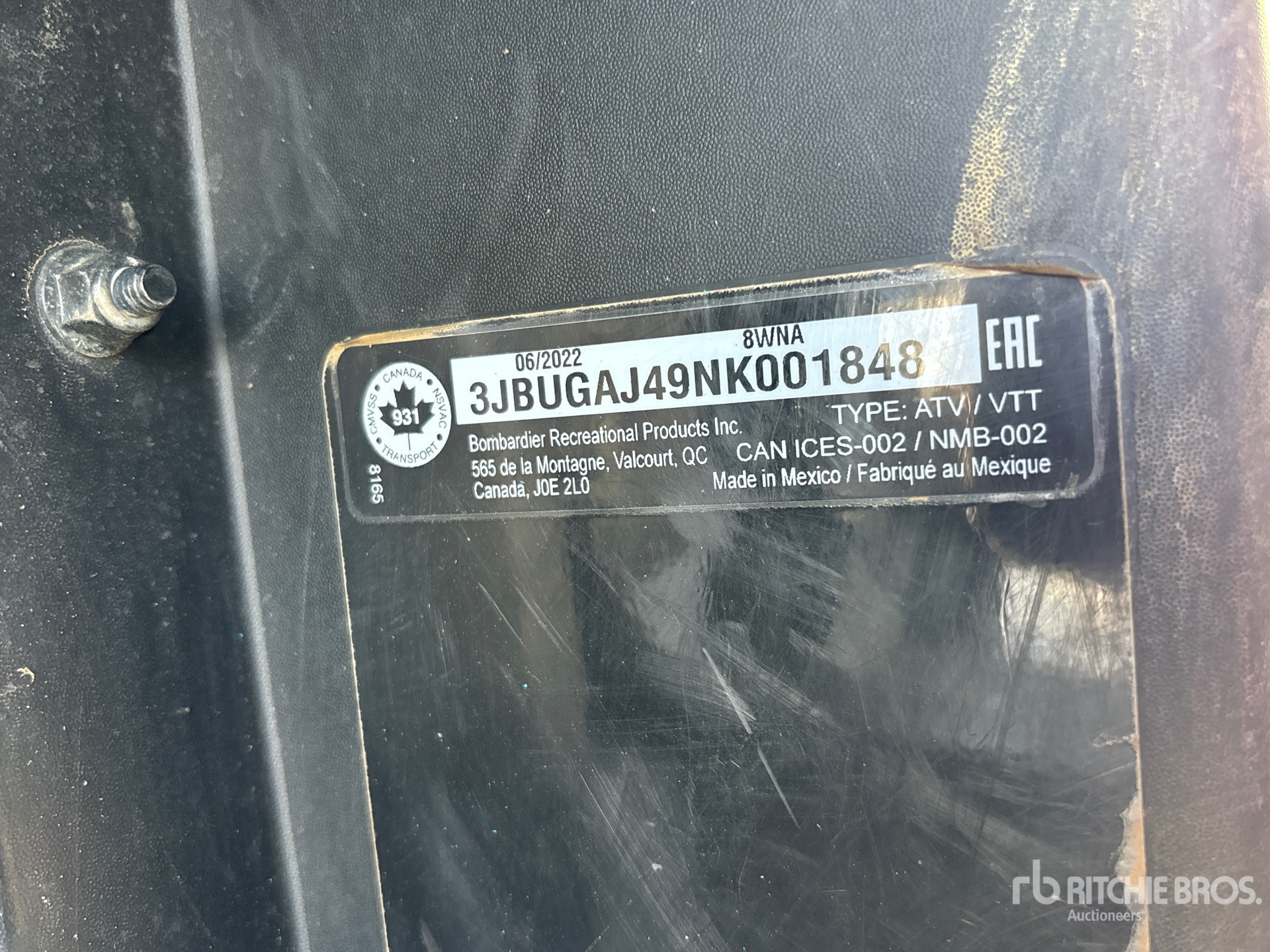 Canopy, 3 Passenger, Winch, Brush Guard, Hitch Receiver, Manual Dump Bed, 2022 US EPA Label, Bombardier 650 cc Gasoline Engine