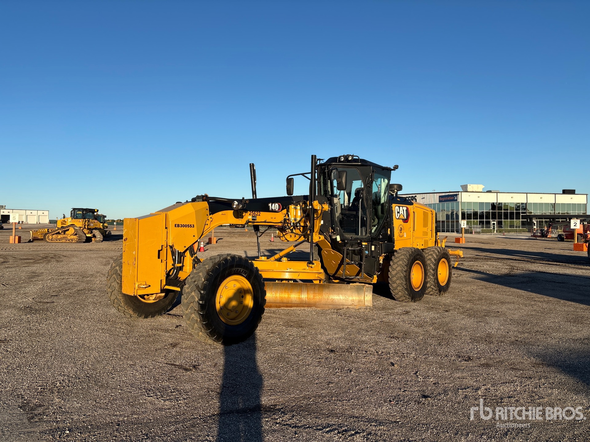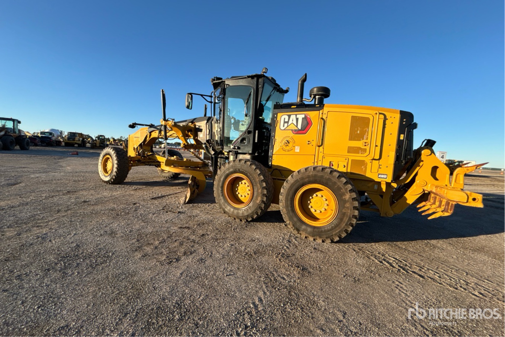 Enclosed Cab, Air Conditioner, Air Ride Seat, Joystick Steering, Rear View Camera, Differential Lock, Pre-Wired for Grade Control, 12 ft / 3.66 m Moldboard, Push Block, Accumulators, Combination Ripper/Scarifier, Rear Auxiliary Hydraulics, 17.5R25 Tires