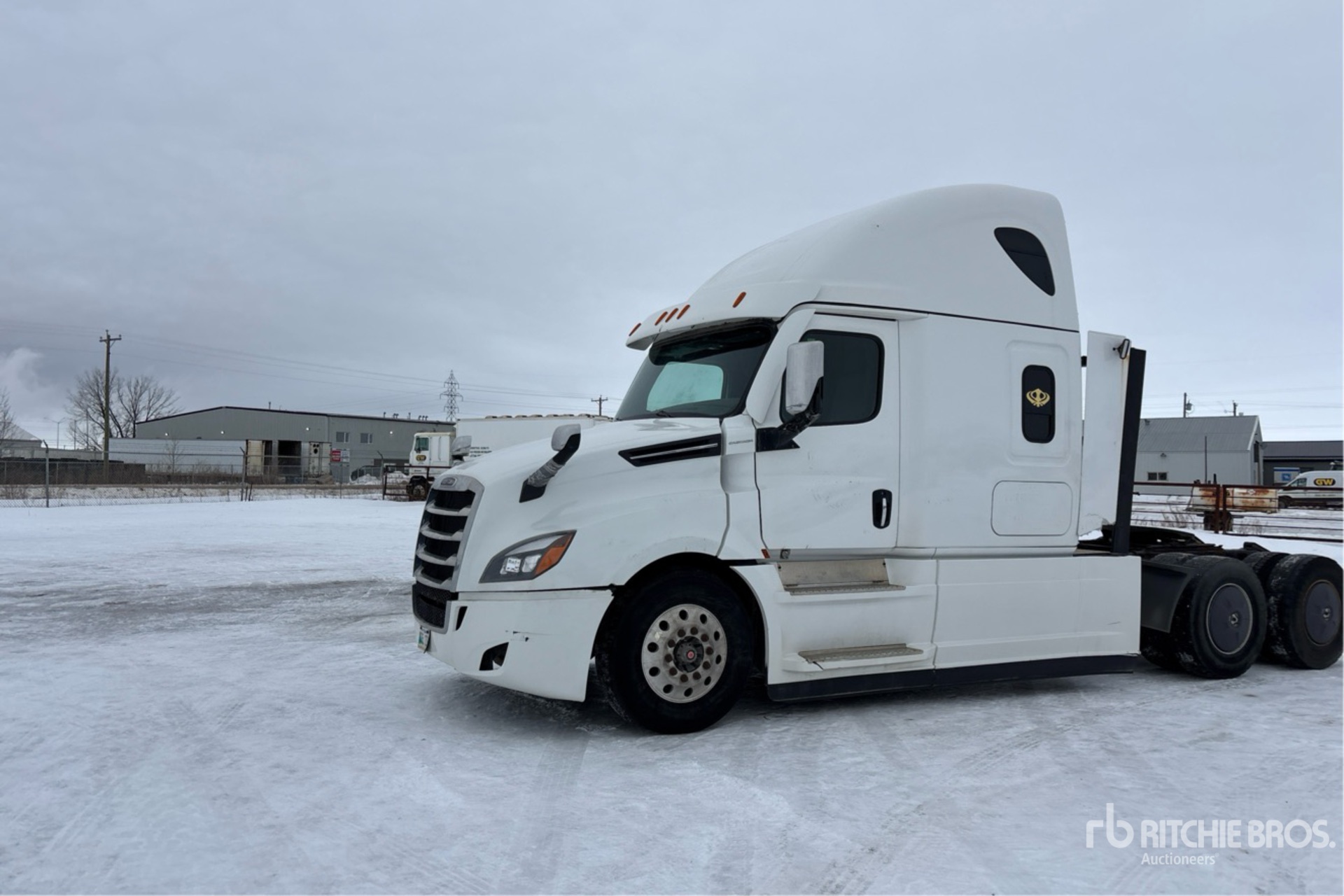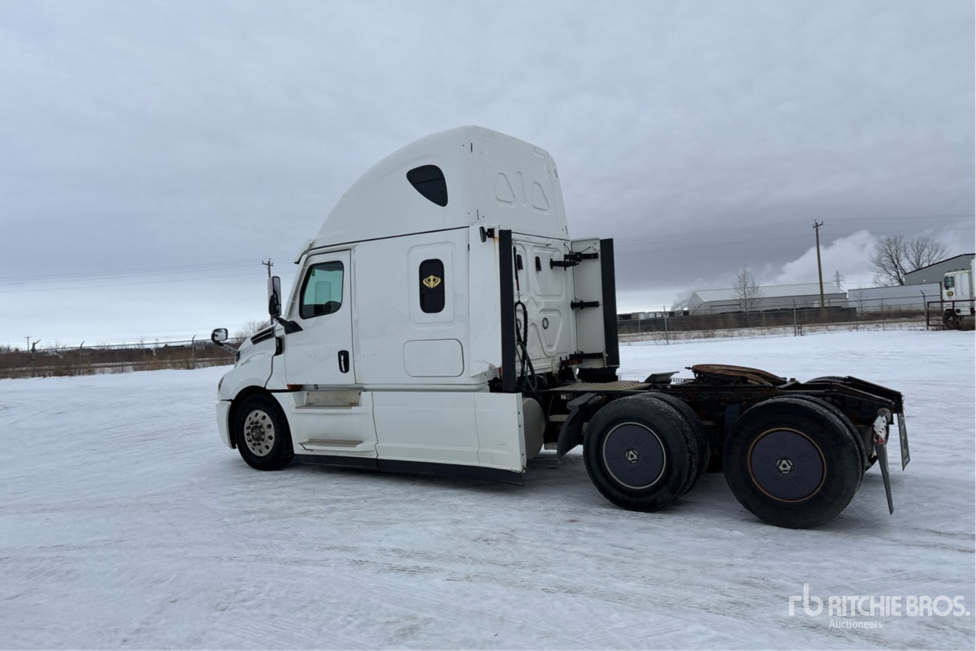 Detroit DD15 505 hp Engine, 12865 Engine hrs, Detroit DT12-1650-OH 12-Speed Automated Transmission, 13220 lb Front Axle, 40000 lb Rears, 53220 lb GVWR, Engine Brake, Double Differential Locks, 48 in High Rise Sleeper Cab, Bunk Beds, Bunk Heater, 229 in Wheelbase, Air Suspension, Aluminum Wheels, 11R22.5, Air Sliding 5th Wheel, Dual Fuel Tanks