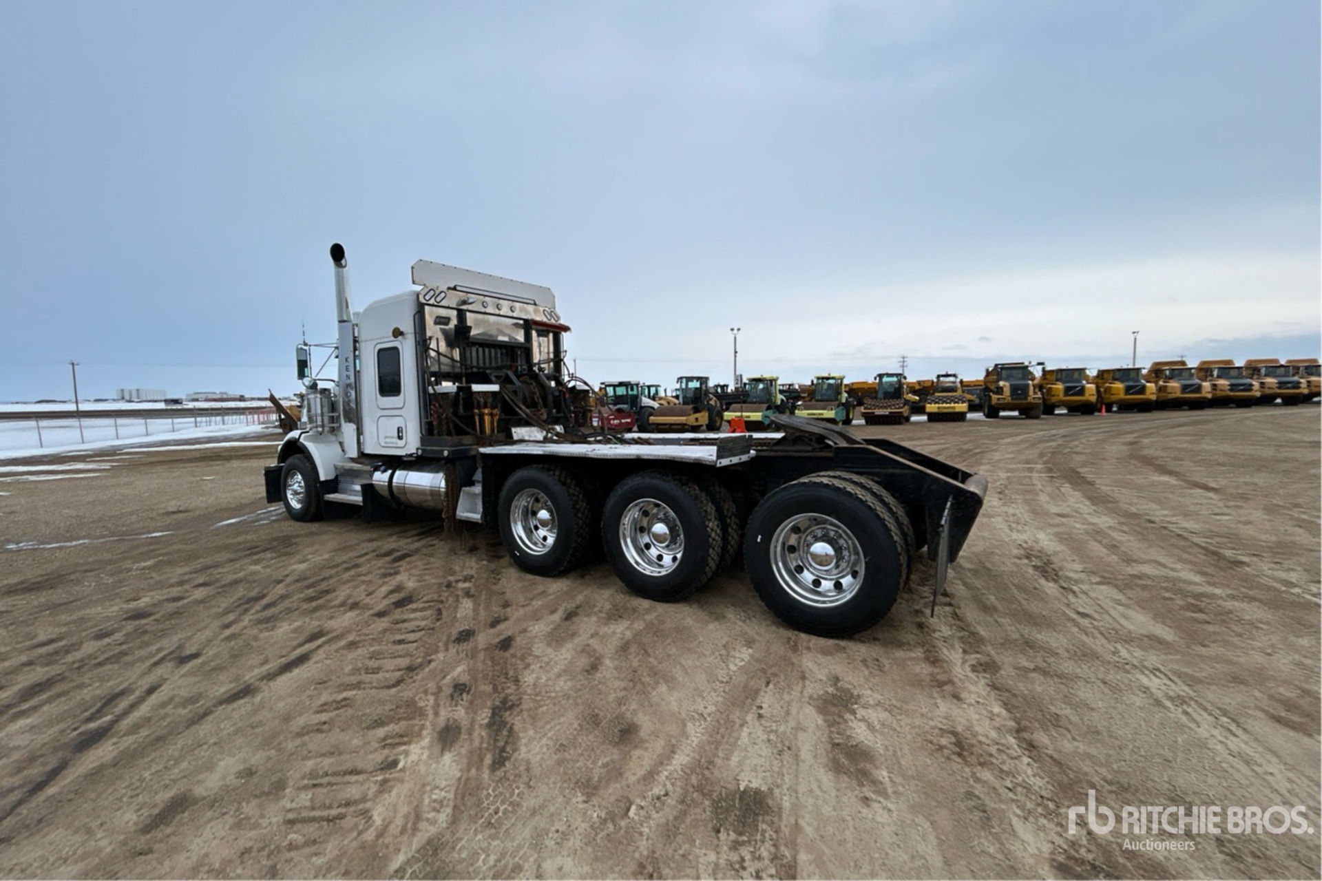 Located in Lane 1, Cummins X15 6 Cylinder 15 L Diesel 565 hp Engine, 2021 US EPA Label, CARB Compliant, Requires Diesel Exhaust Fluid, Engine Coolant Heater, Positive Air Shutoff, Webasto Engine Coolant Heater, 15956 Engine hrs, Engine Brake, Eaton Fuller RTLO-20918B 18-Speed Manual Transmission, Triple Differential Locks, 7257 kg Front Axle, 27669 kg Rears, Meritor RZ-XX-166P Drive Axles, 4.10:1 Axle Ratio, 34927 kg GVWR, Air Ride Cab, 52 in Mid Roof Sleeper Cab, Bunk Heater, Aluminum Wheels, 385/65R22.5 Front Tires, 11R24.5 Rear Tires, Dual Steering Boxes, Double Frame, Neway ADZ Series Air Ride Suspension, 264 in Wheelbase, PTO, Tail Roll, Tulsa Rufnek Hydraulic Winch, Lowboy Ramps, Complete-Dispersal-for-T-Ruckin-Oilfield-Services-Ltd