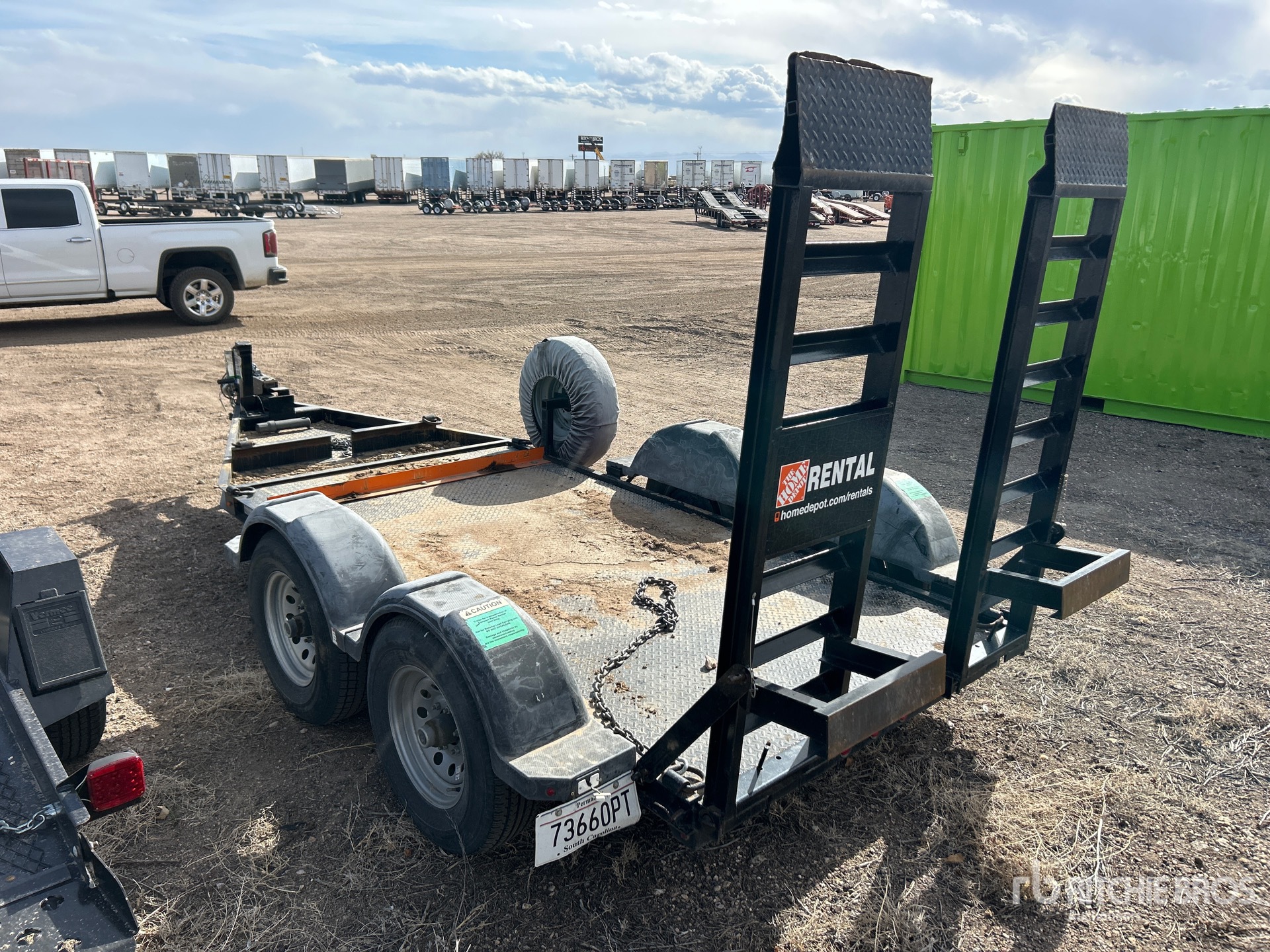Ball Hitch, Torsion Axle, Surge Brakes, 10 ft Main Deck, 61 in Usable Deck Width, 64 in Overall Deck Width, Manual Ramps, Steel Decking, 225/75R15 Tires, 7000 lb GVWR