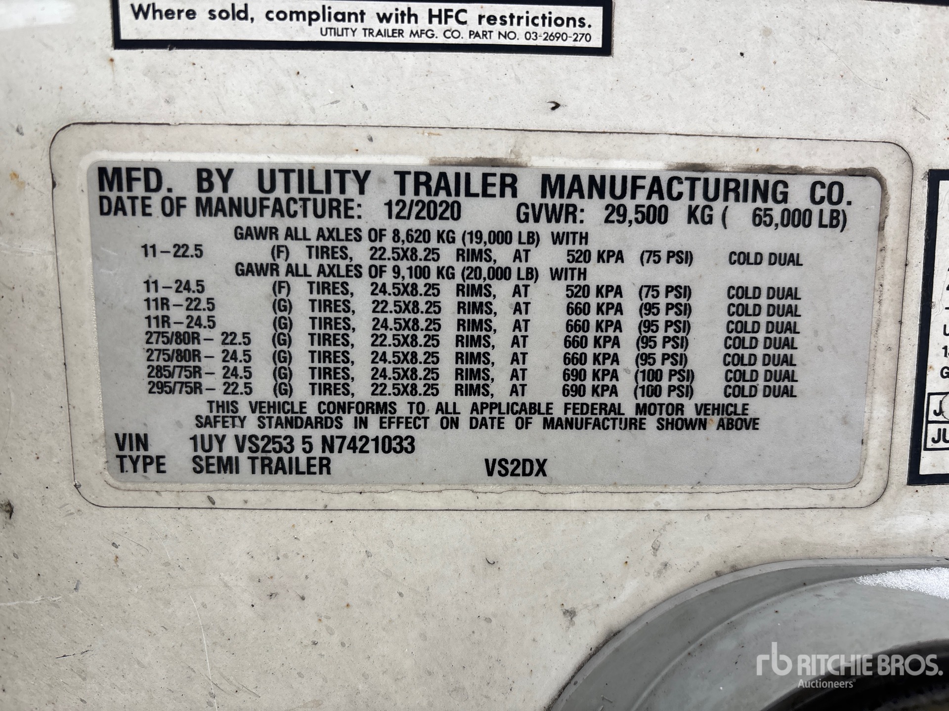 Air Ride Sliding Suspension, Side Skirts, Hardwood Floor, Swing Door, 295/75R22.5 Tires 65000 lb GVWR