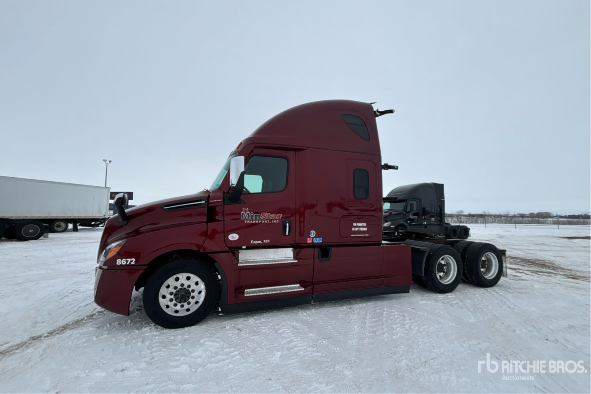 Located in Lane 7 Spot 50, Detroit DD15 475 hp Engine, 2022 US EPA Label, 12184 Engine hrs, Detroit DT12-1650-OHE 12-Speed Automated Transmission, 12500 lb Front Axle, 40000 lb Rears, 52500 lb GVWR, Engine Brake, 70 in High Rise Sleeper Cab, Bunk Beds, Bunk Heater, 223 in Wheelbase, Air Suspension, Aluminum Outer Wheels, 275/80R22.5, Air Sliding 5th Wheel, Dual Fuel Tanks