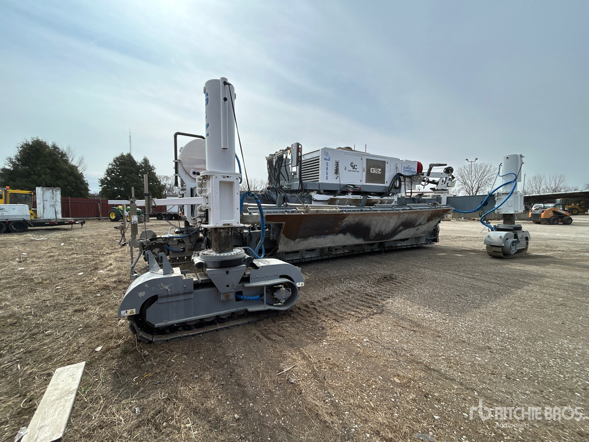 Requires Diesel Exhaust Fluid, 22 Vibrator Circuits, Cure Spraying Applicator, 16 in Track Shoes w/Rubber Pads, Wireless controller, Tie bar inserter, hydraulic pucks, telescopic screed ends, IMT 7500 crane