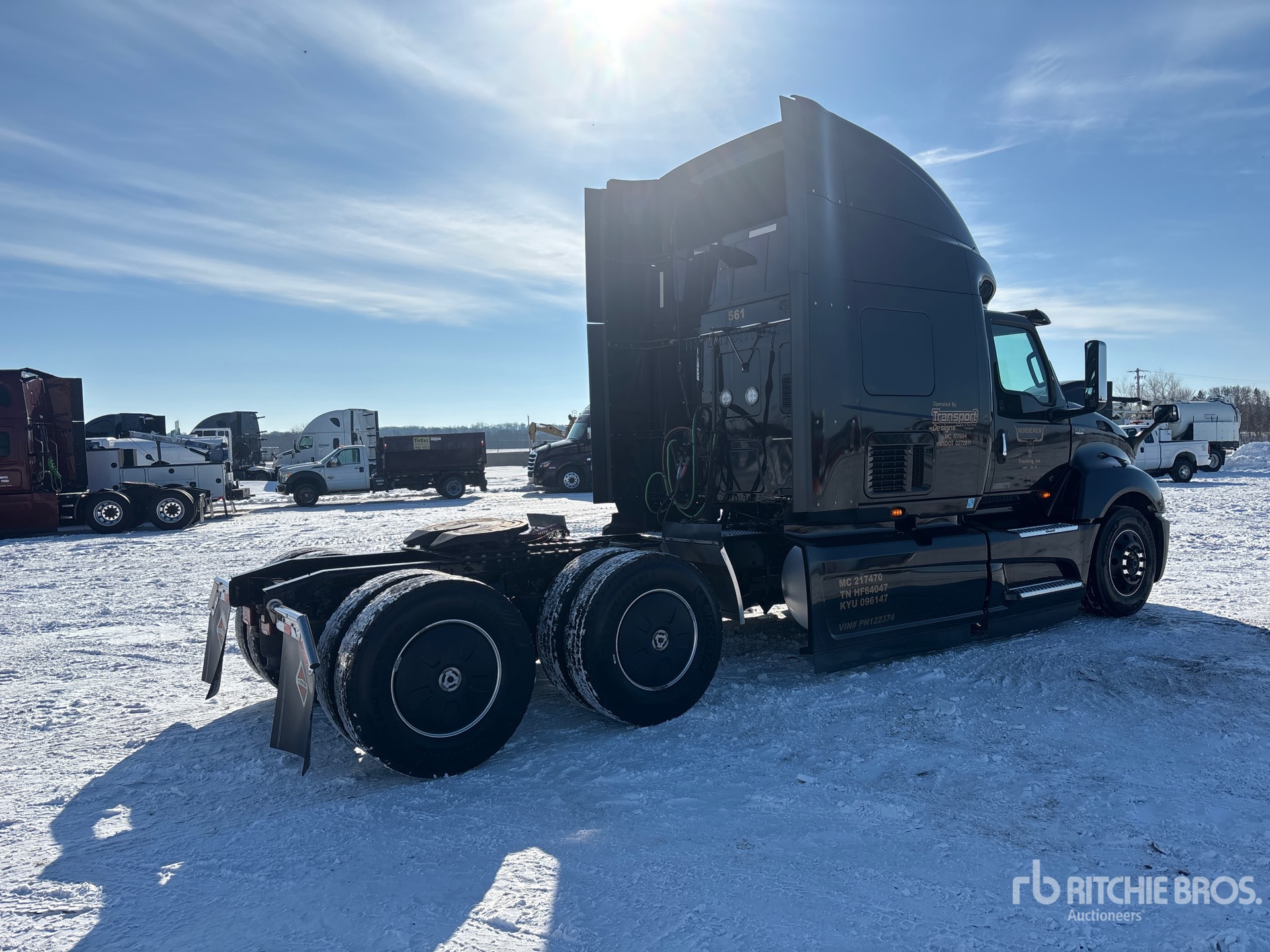 Located in Lane 7 Spot 49, Cummins X15 450 hp Engine, 2022 US EPA Label, 8756 Engine hrs, Automated Transmission, 13200 lb Front Axle, 40000 lb Rears, 53200 lb GVWR, Engine Brake, 56 in Mid Roof Sleeper Cab, 235 in Wheelbase, Air Suspension, Aluminum Wheels, 275/80R22.5, Air Sliding 5th Wheel, Dual Fuel Tanks
