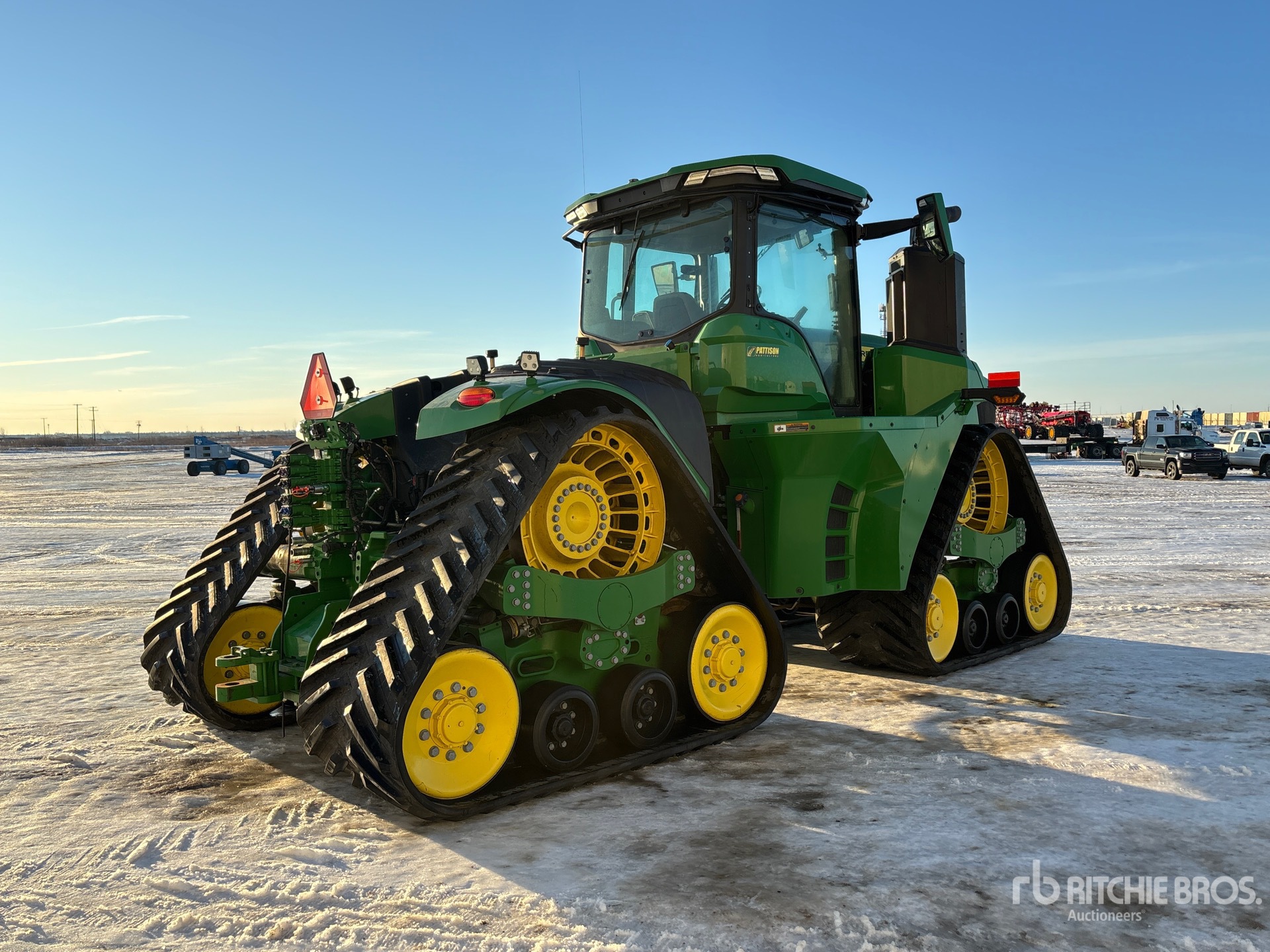 Located in Lane 1 Spot 4, Enclosed Cab, Air Conditioner, Air Ride Seat, 18 Forward 6 Reverse, e18 PowerShift, Forward/ Reverse Shuttle, Cab Suspension, 4600 CommandCenter Display, 2023 US EPA Label, CARB Compliant, Requires Diesel Exhaust Fluid, High Flow Hydraulics, 6 Rear Remotes, ISOBUS, Drawbar, Camso 6500 36 in Tracks, 87 in Track Spacing, Dual Hydraulic Pumps (110 GPM), Tow Cable, Ultimate Comfort Pkg, Poly Mid Rollers, Complete-Dispersal-MacDermott-Farms-Ltd