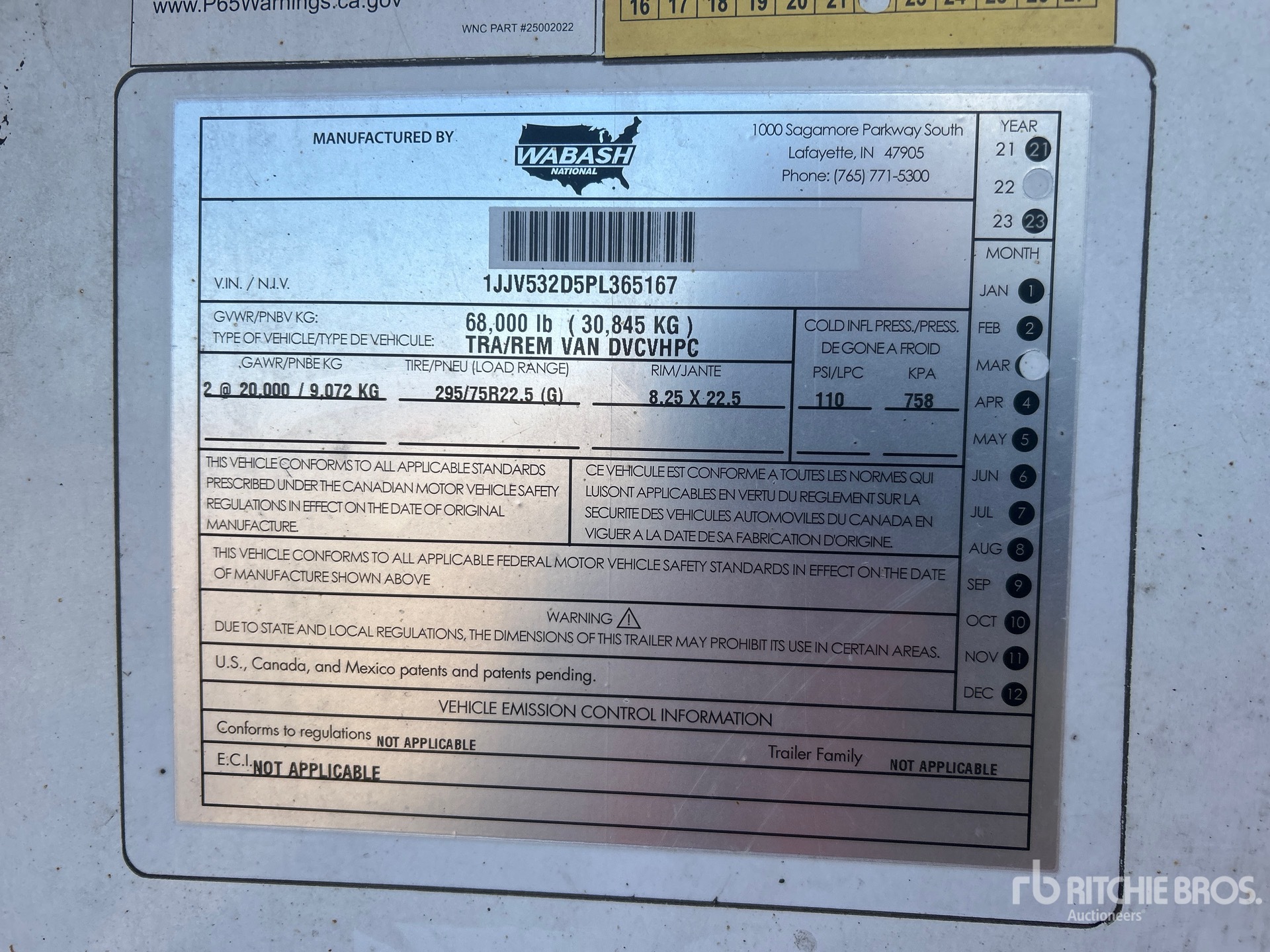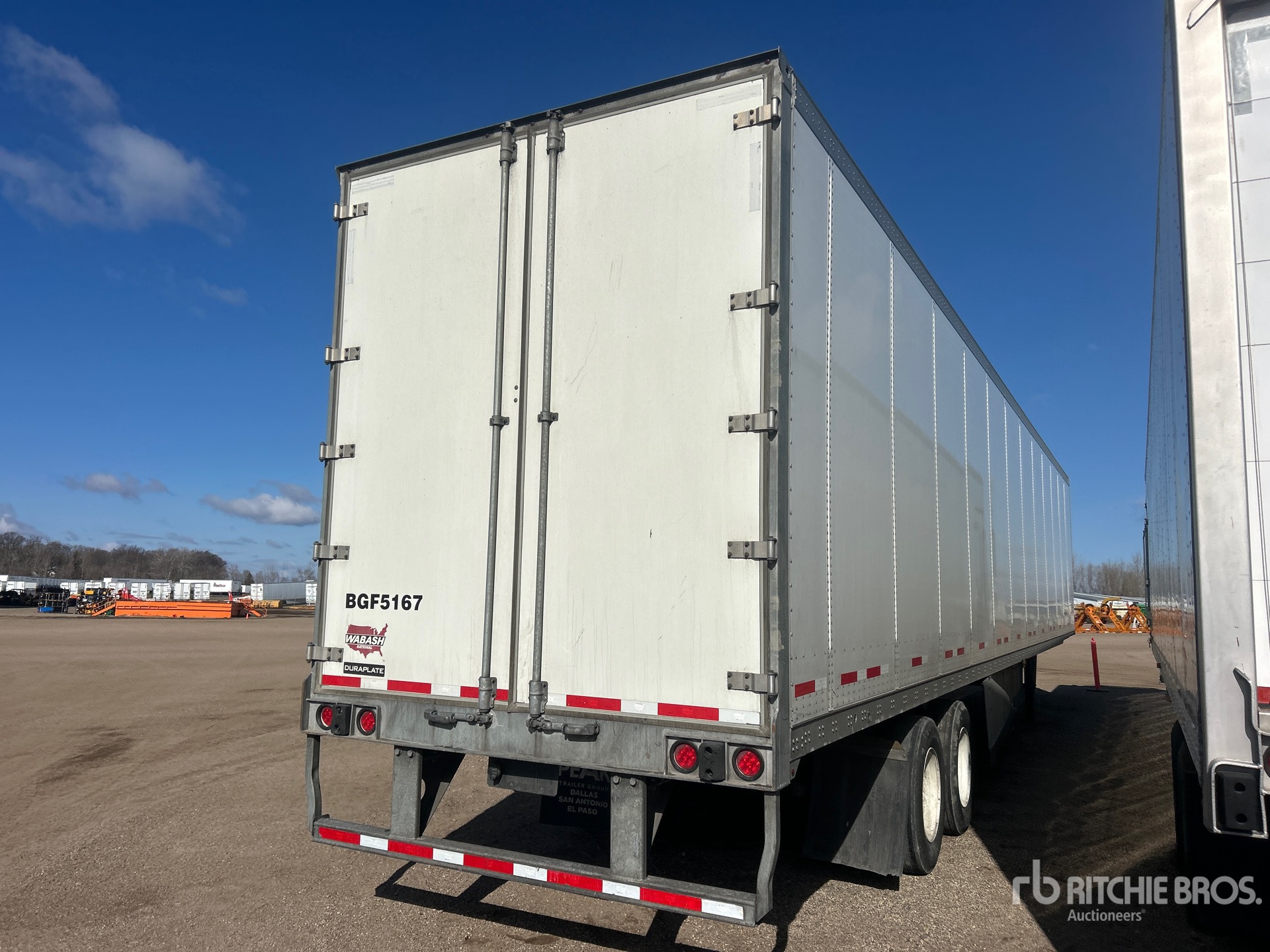 Located in Lane 15 Spot 47, Aluminum/Steel Combination Frame, Air Ride Sliding Suspension, Side Skirts, Hardwood Floor, Swing Door, 295/75R22.5 Tires 68000 lb GVWR