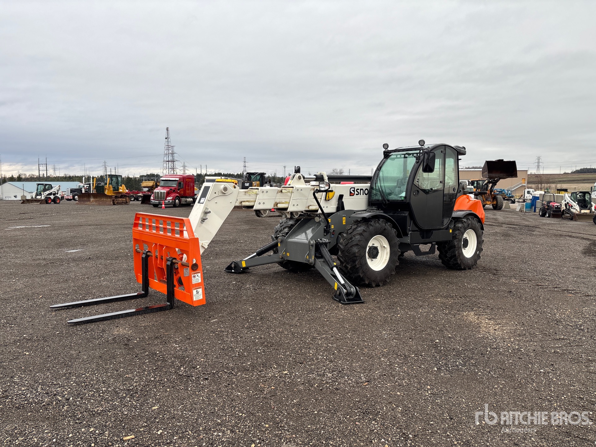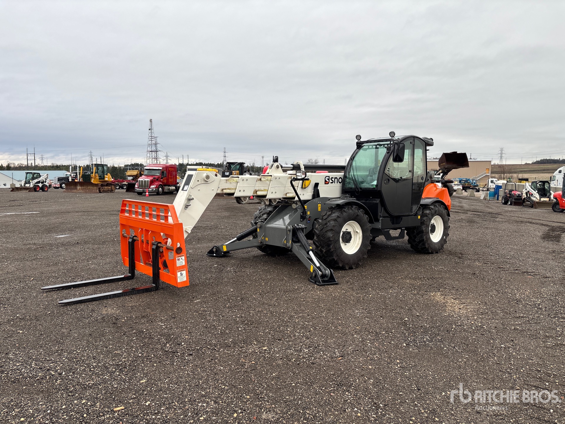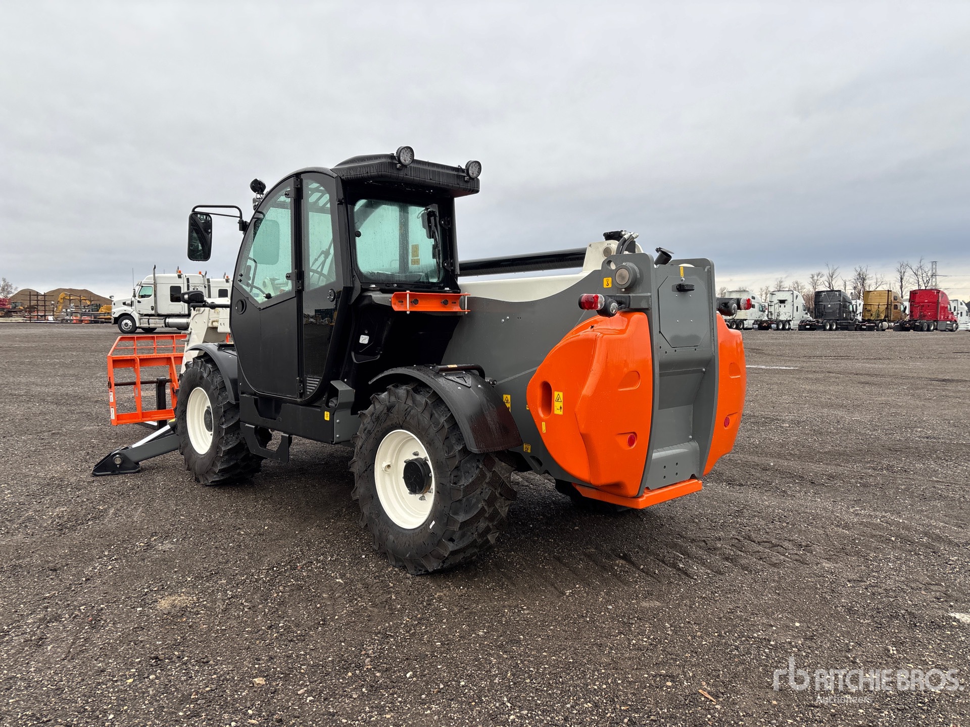 Enclosed Cab, Air Conditioner, 53 ft 8 in Max Lift Height, 10000 lb Max Lift Capacity, 2024 US EPA Label, 48 in Forks, Manual Coupler, Outriggers, Auxiliary Hydraulic Plumbing, 455/65R22.5 Tires