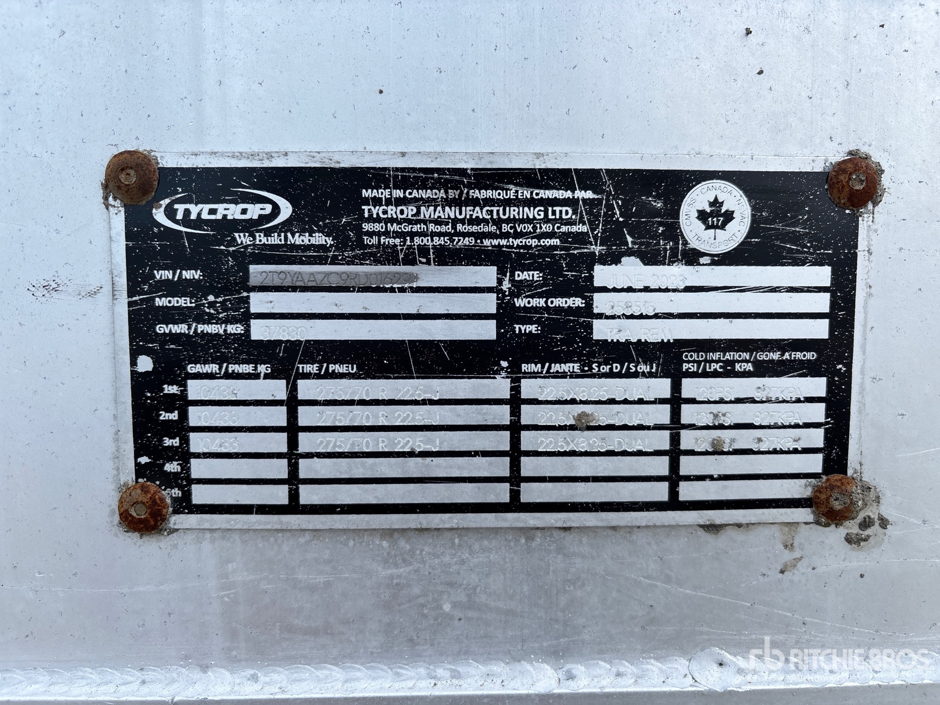 Aluminum Frame, Air Ride Suspension, Air Brakes, 53 ft Body, 108 in Side Walls, Alloy Body, Manual Roll Tarp, Split Swing Tailgate, Aluminum Wheels, 275/70R22.5 Tires, 37830 kg GVWR