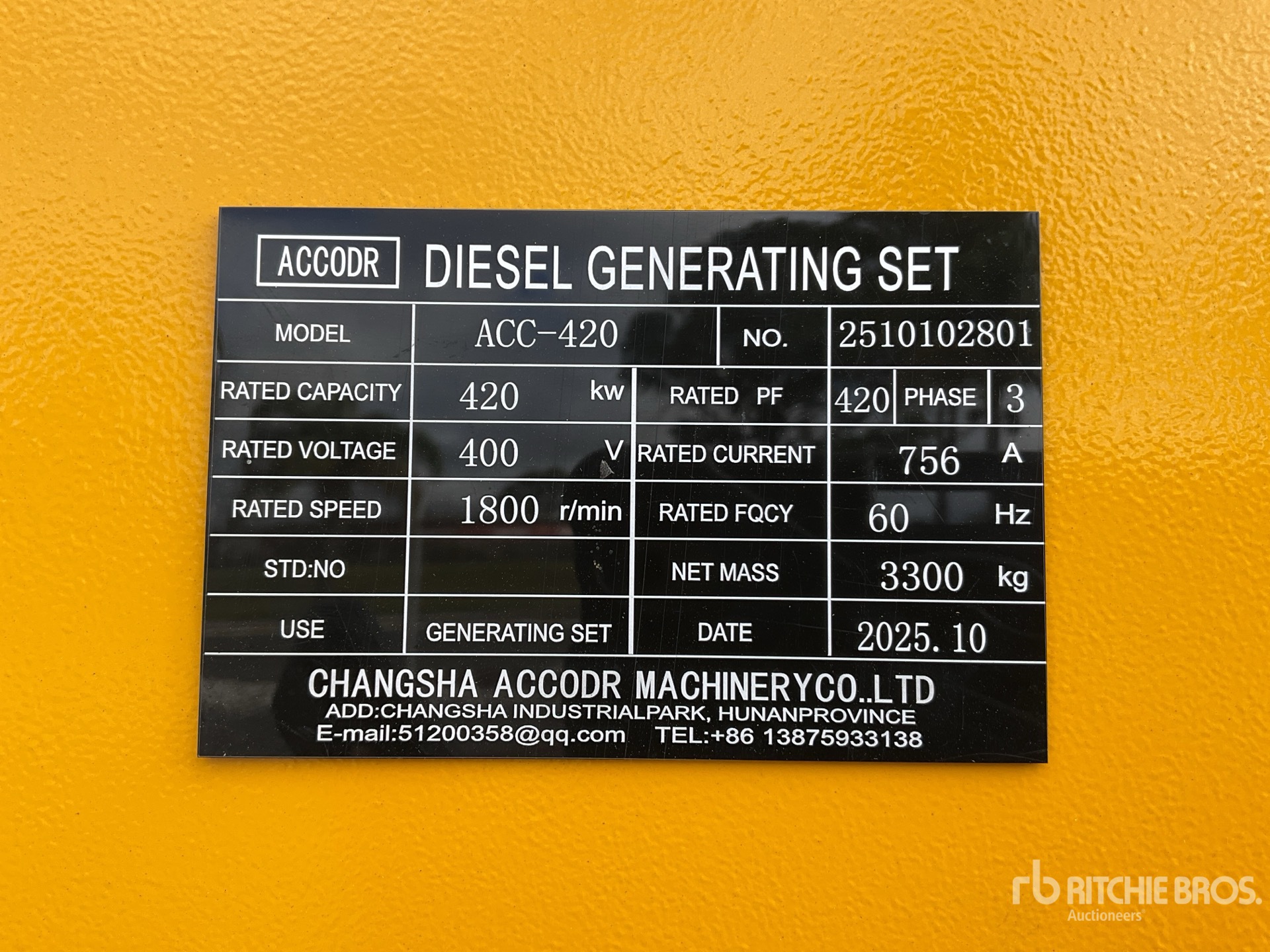 ACCODR 6 Cylinder Diesel Engine, 420 kVA/ Rated 3 Phase Output, 400 V Rated Voltage, Sound Attenuated, Bottom Mounted Fuel Tank, / Motor Diesel 6 Cilindros, 420 kVA Trifasico, 400 V, Caja Acustica, Tanque de Combustible Montado Adentro