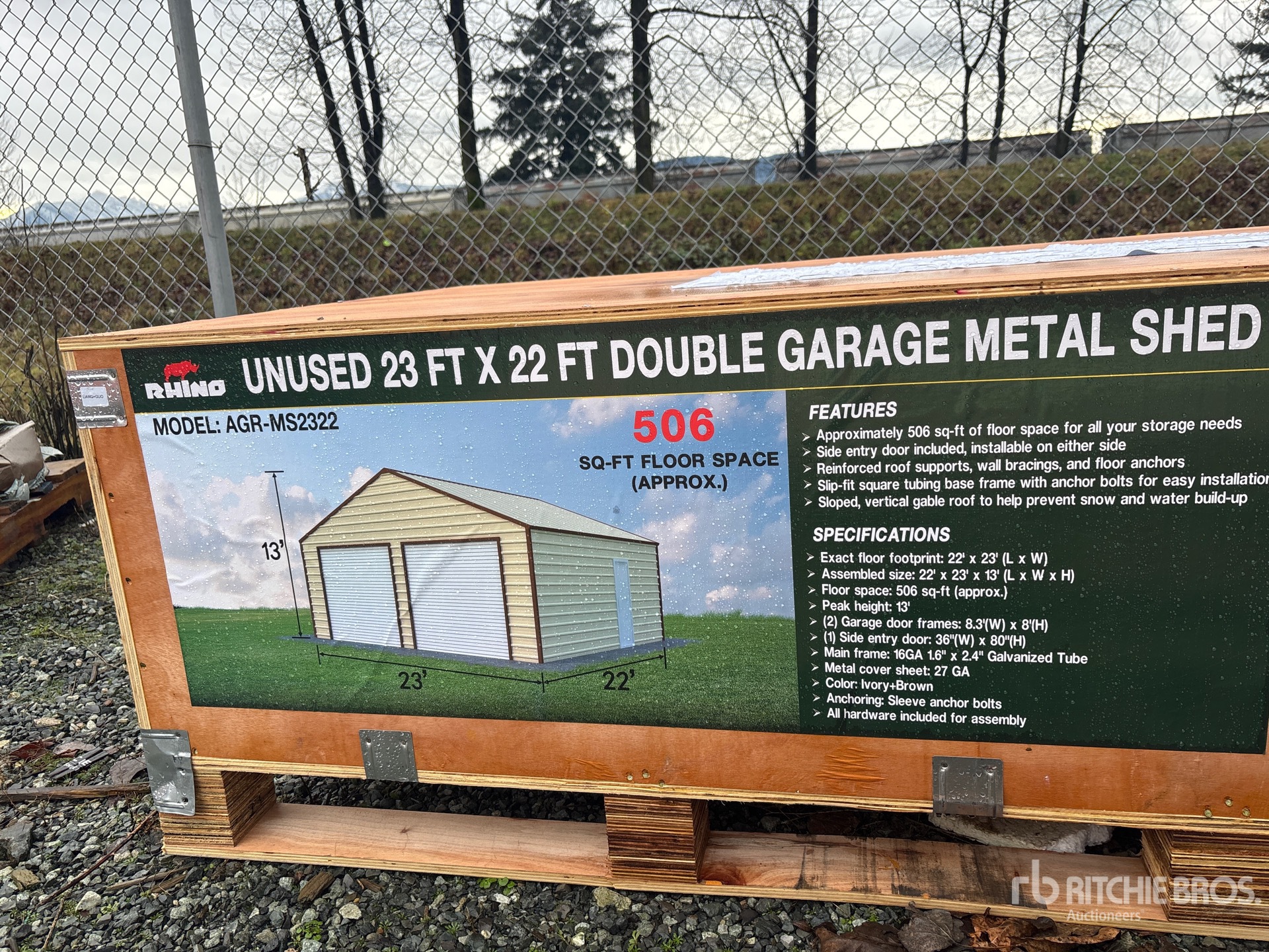 2025 AGR-MS2322 23 ft x 22 ft Double Garage Metal Storage Building (Unused)