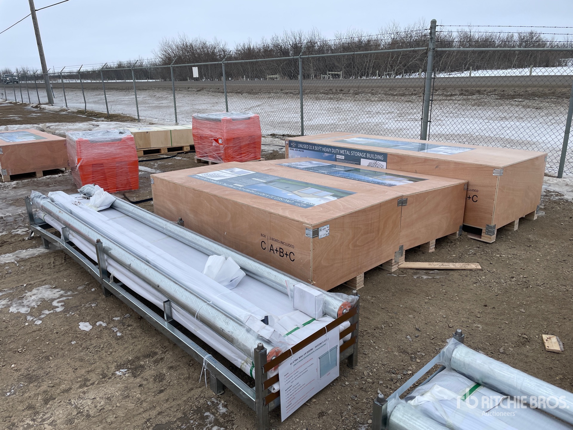 17 ft Total Height, 12 ft Sidewall Height, Quantity of (3) Boxes - Builds (1) Storage Building, w/ (2) Electric Roll-up Doors