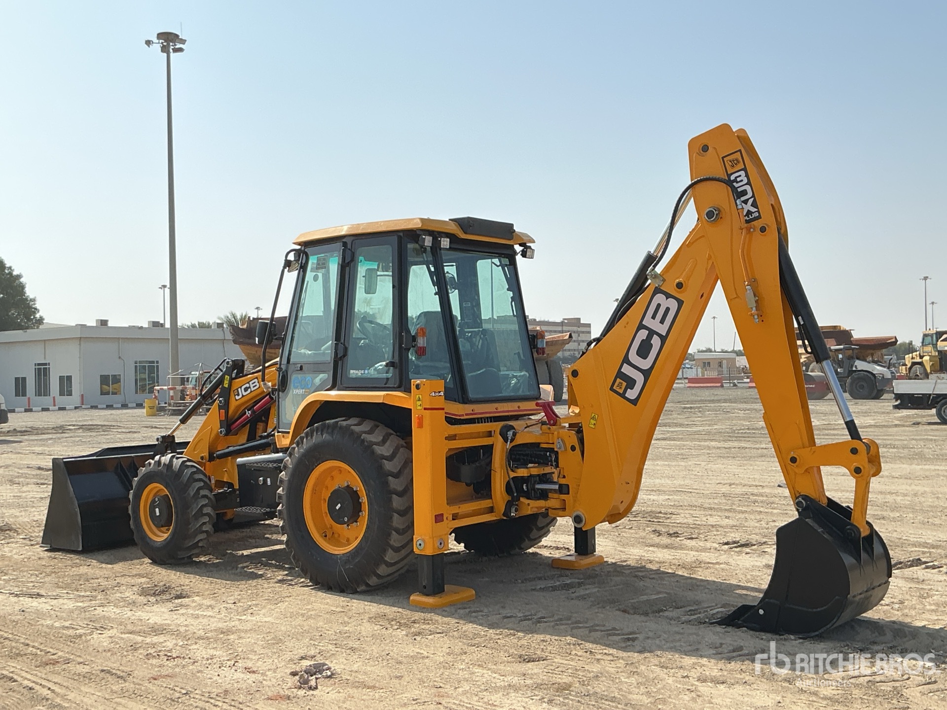 Enclosed Cab, 2400 mm Loader Bucket, Side Shift, 780 mm Backhoe Digging Bucket, Rear Auxiliary Hydraulics