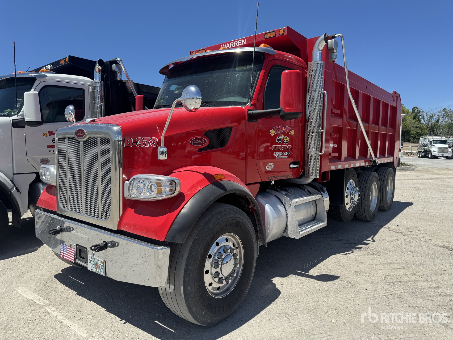Paccar MX-13 6 Cylinder 12.9 L Diesel Engine, 2024 US EPA Label, Engine Brake, Allison 4500 Automatic Transmission, Double Differential Locks, 20000 lb Front Axle, 46000 lb Rears, Dana D46-170HP Drive Axles, 4.3:1 Axle Ratio, Air Ride Cab, Aluminum Wheels, 11R24.5, Steerable Air Lift Pusher Axle, Dual Steering Boxes, Double Frame, Hendrickson Haulmaax Suspension, 236 in Wheelbase, PTO, Warren Steel Body, Electric Roll Tarp, Air High-Lift Tailgate, Wingman Fusion Collision Mitigation System, Equipment-from-B-R-W-Contracting