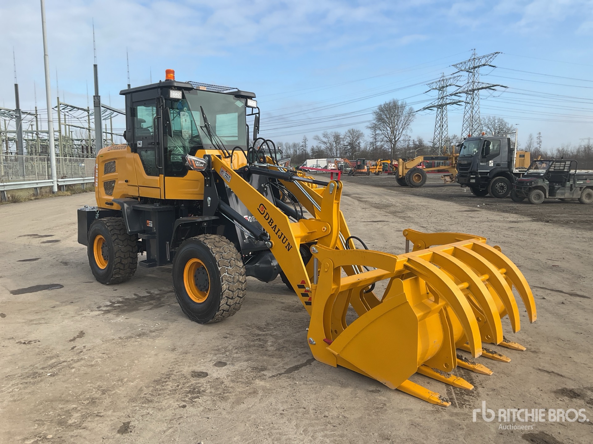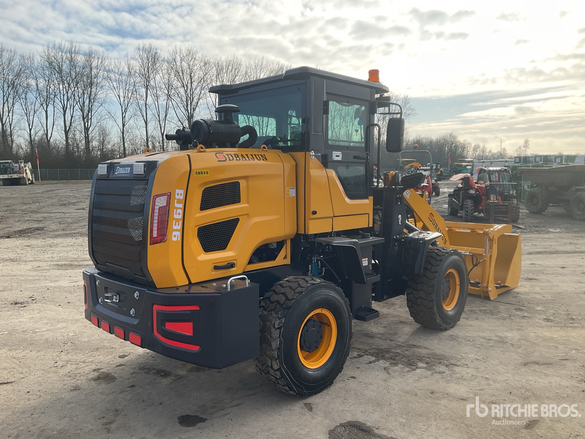 Enclosed Cab, Auxiliary Hydraulics, 1830 mm Bucket, Muck forks, 20.5/70-16 Tires