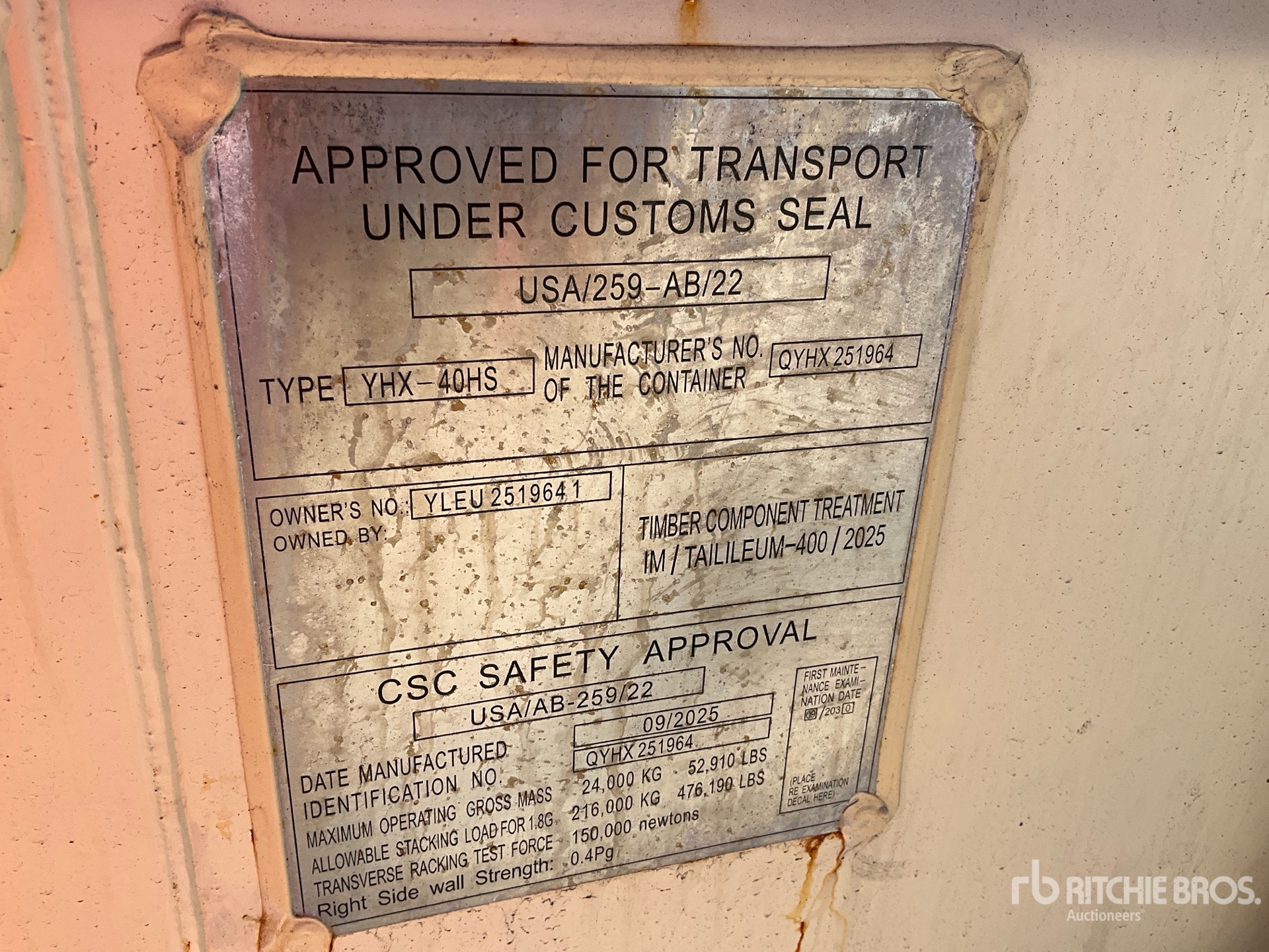 치수는 추정치로만 제공됩니다. 실제 적재 치수는 트럭/트레일러 높이 및 적재된 장비 구성/위치에 따라 달라질 수 있습니다. 안전한 운송을 위해 경매 현장에서 방출하기 전 적재 치수를 측정하는 것은 구매자의 책임입니다. 모든 치수는 구매자가 확인해야 합니다. 운송 시 이 치수에 의존해서는 안 됩니다.