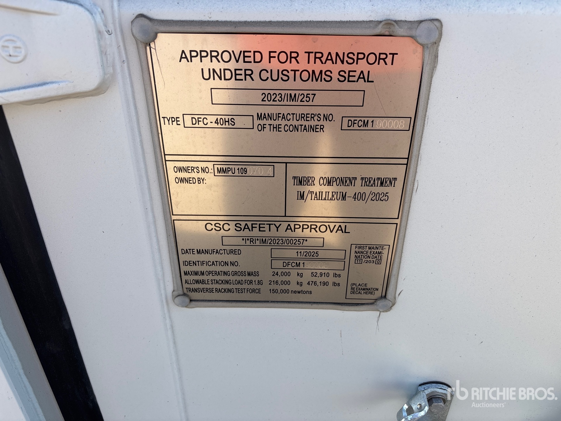 치수는 추정치로만 제공됩니다. 실제 적재 치수는 트럭/트레일러 높이 및 적재된 장비 구성/위치에 따라 달라질 수 있습니다. 안전한 운송을 위해 경매 현장에서 방출하기 전 적재 치수를 측정하는 것은 구매자의 책임입니다. 모든 치수는 구매자가 확인해야 합니다. 운송 시 이 치수에 의존해서는 안 됩니다.