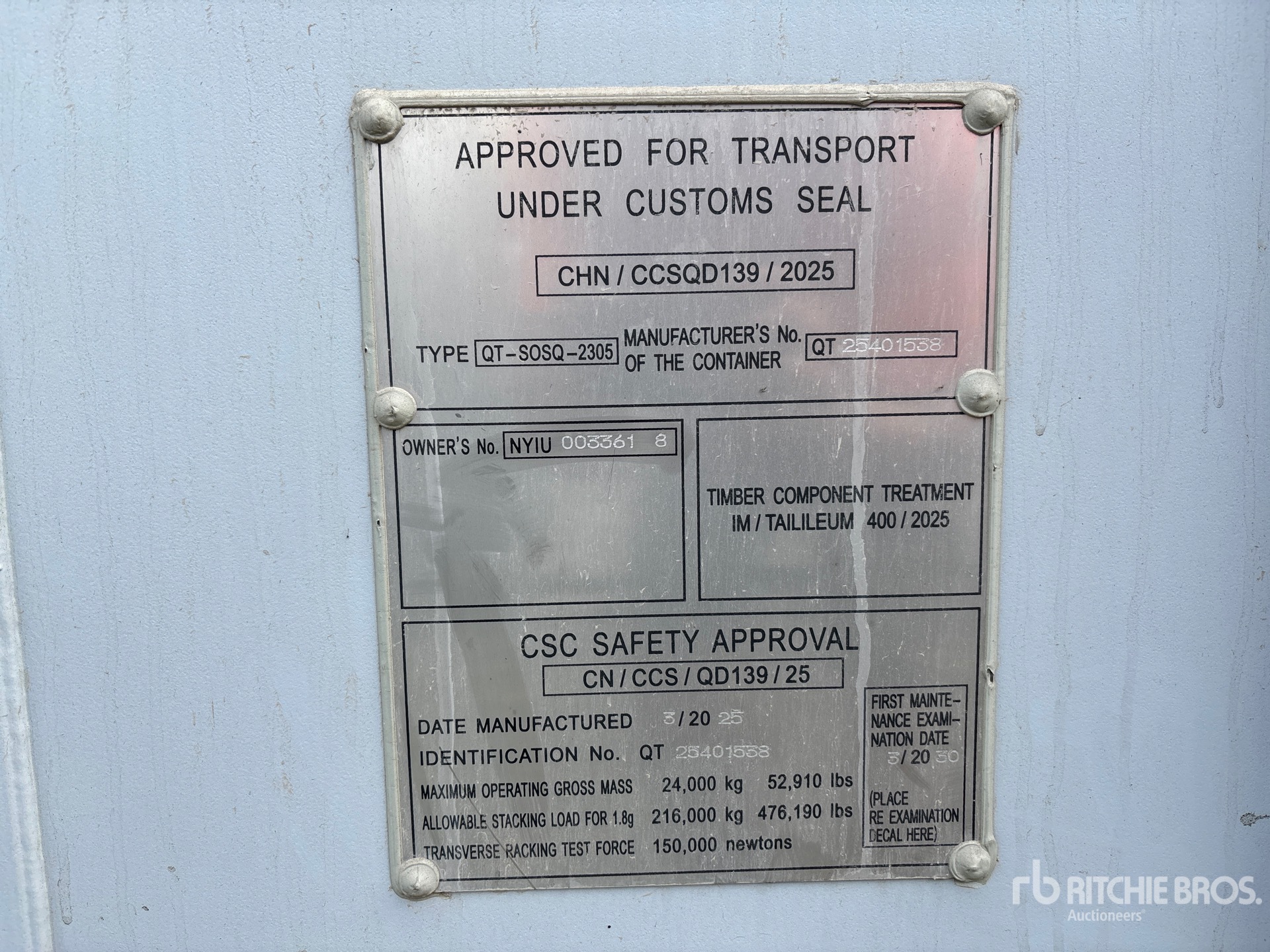 Ritchie Bros. 소속의 적격 직원이 세부적인 장비 정보를 수집하고 주요 구성 요소의 기능 테스트를 수행했습니다. 경매일에 입찰하기 전 본인 또는 대리인이 현장에서 물품을 검사할 수도 있습니다.
