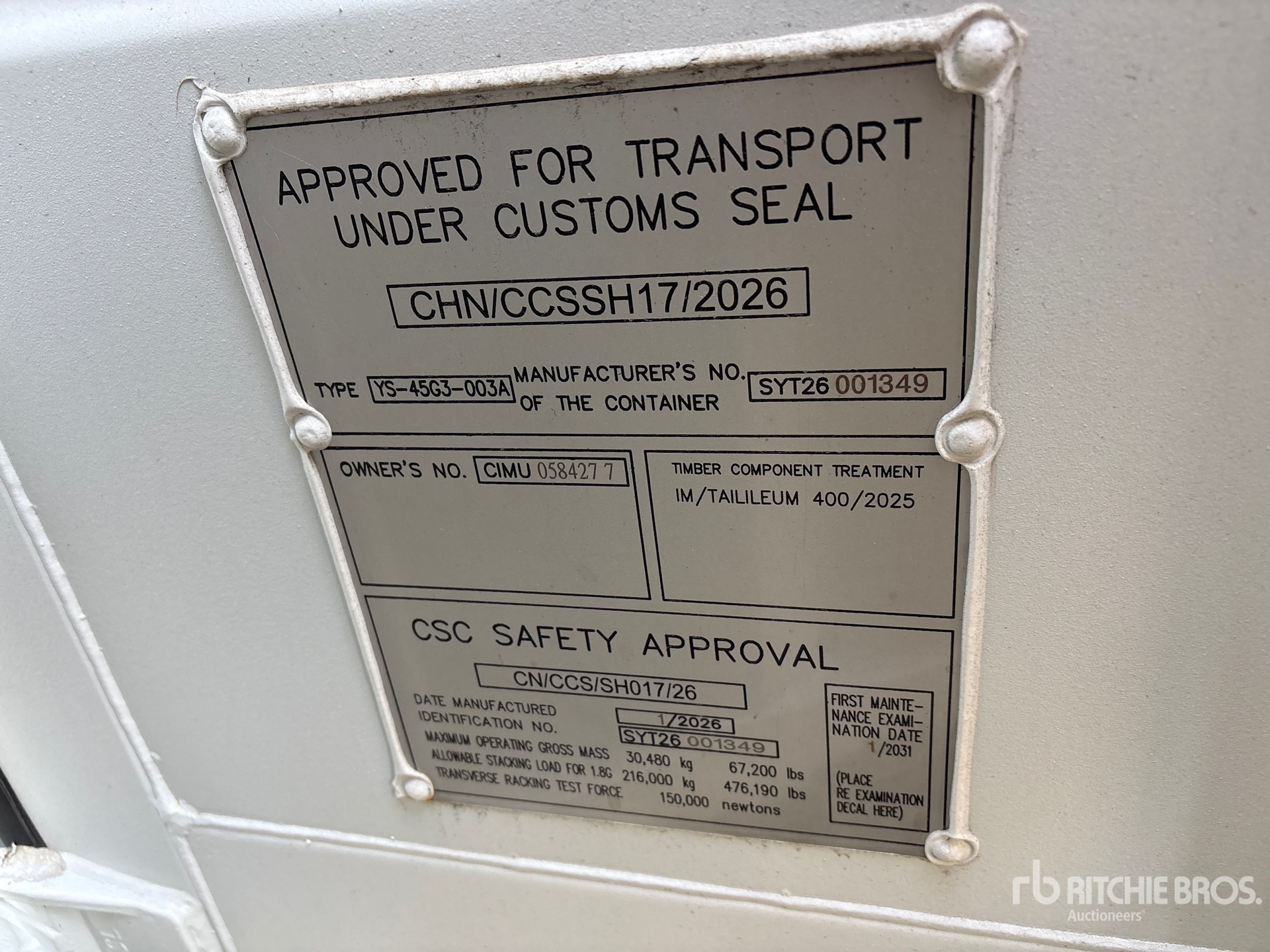 자세한 장비 정보는 범위가 제한되어 있으며, Ritchie Bros. Auctioneers에서는 본 문서에 명시된 항목 이외의 장비 구성요소나 측면에 대해서는 검사하지 않았습니다. 명시적으로 언급하지 않는 한, 당사는 장비 또는 그 구성요소와 관련하여 명시적으로나 묵시적으로 어떠한 진술이나 보증을 제공하지 않습니다. 여기에는 기능, 해당 당국이나 규제 기관의 안전 표준 또는 요구 사항의 준수, 특정 용도 적합성, 상업성 등과 관련된 진술 또는 보증을 포함하되 이에 국한되지 않습니다. 입찰하기 전 장비의 상세한 검사를 실시하도록 강력히 권장합니다.