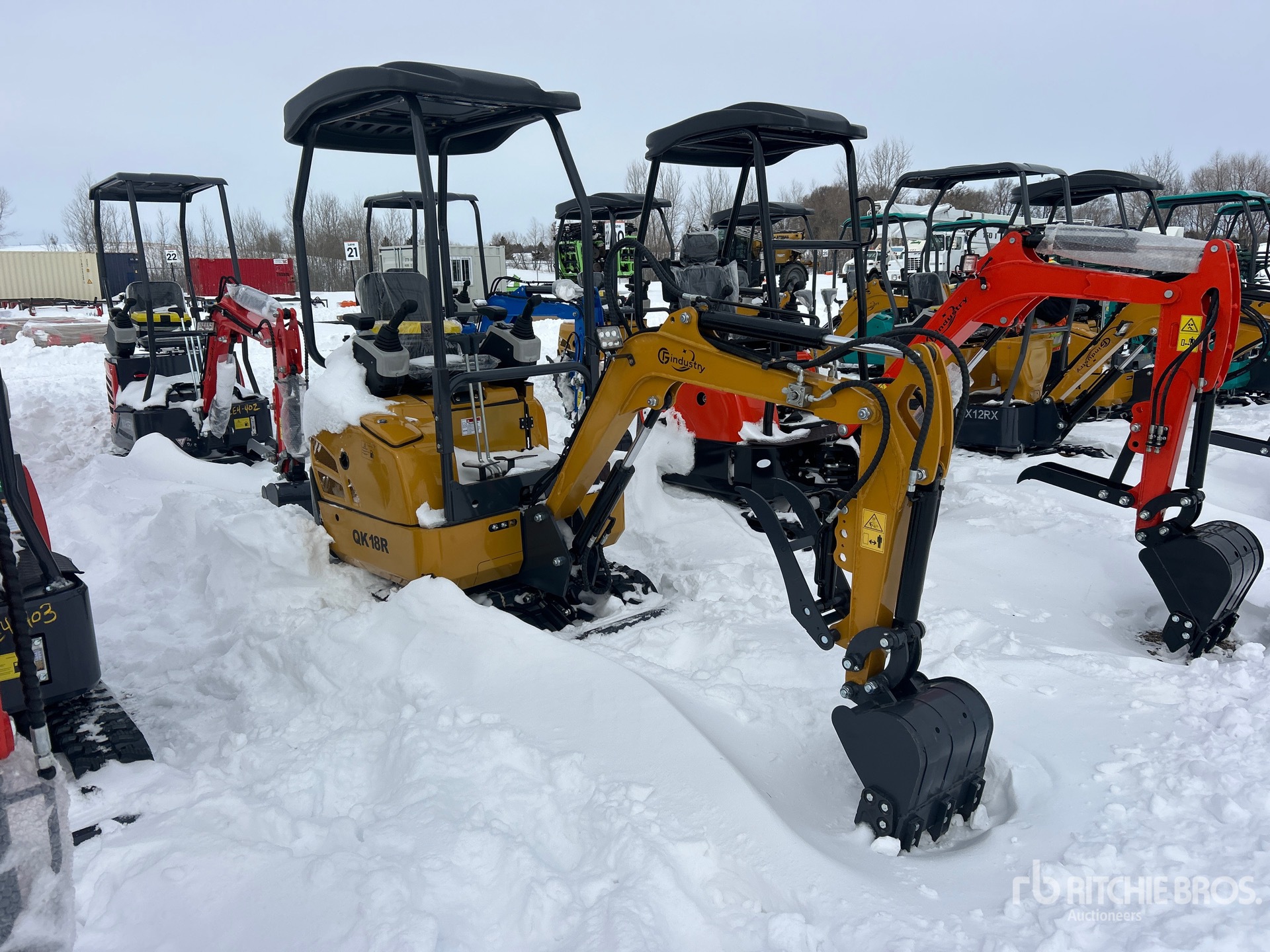 2 ft 7 in Stick, Auxiliary Hydraulic Plumbing, Backfill Blade, 7 in Rubber Tracks, 14 in Digging Bucket, Manual Thumb