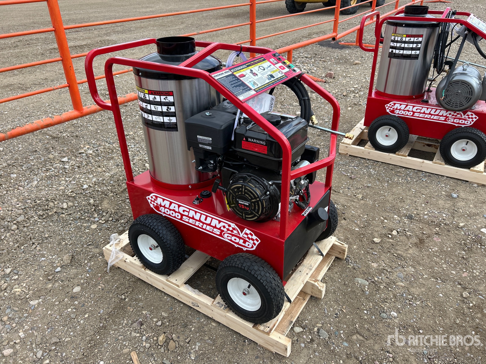 4000 psi Rating, Water Heater, 10 gal Water Supply, Hose, Spray Wand, 15 hp Gasoline Engine