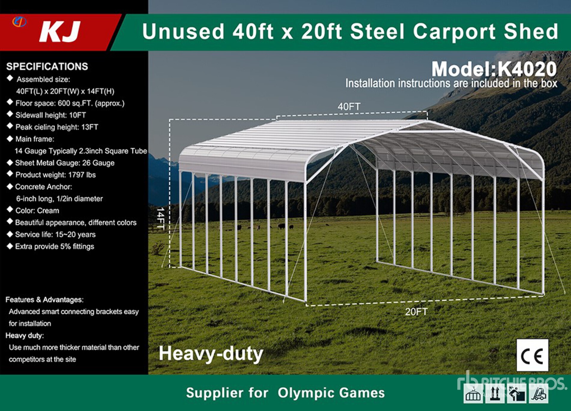 2026 KJ K4020 20 ft x 40 ft (Unused)