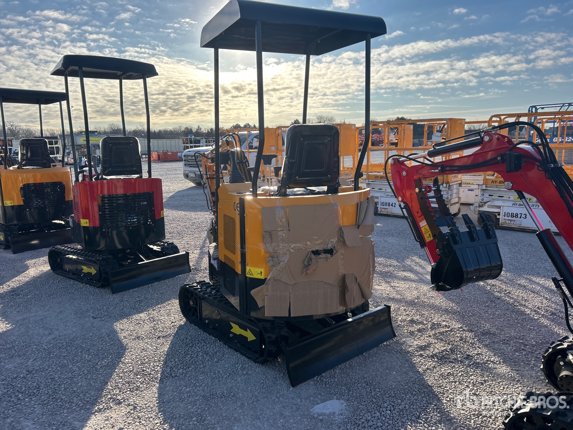 2 ft 7 in Stick, Auxiliary Hydraulic Plumbing, Backfill Blade, 7 in Rubber Tracks, 14 in Digging Bucket, Manual Thumb