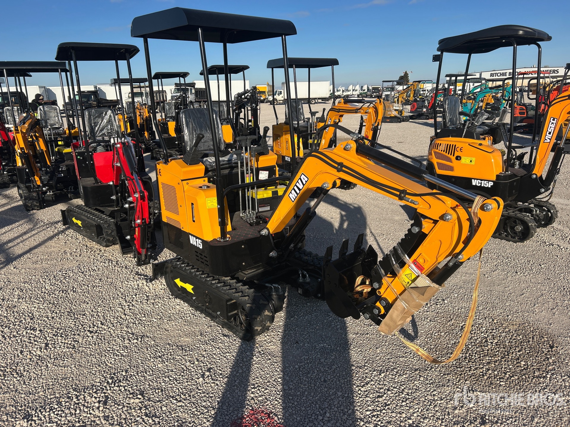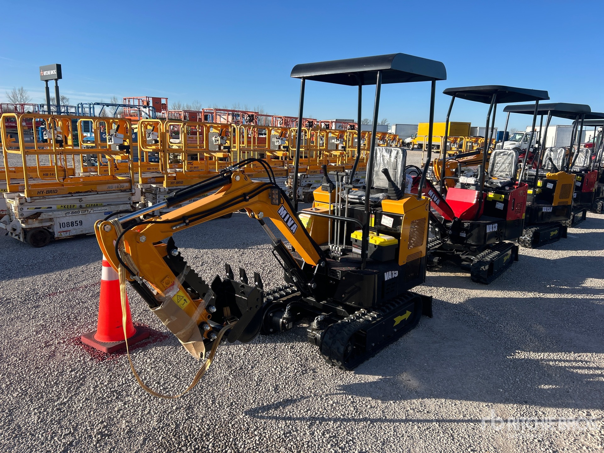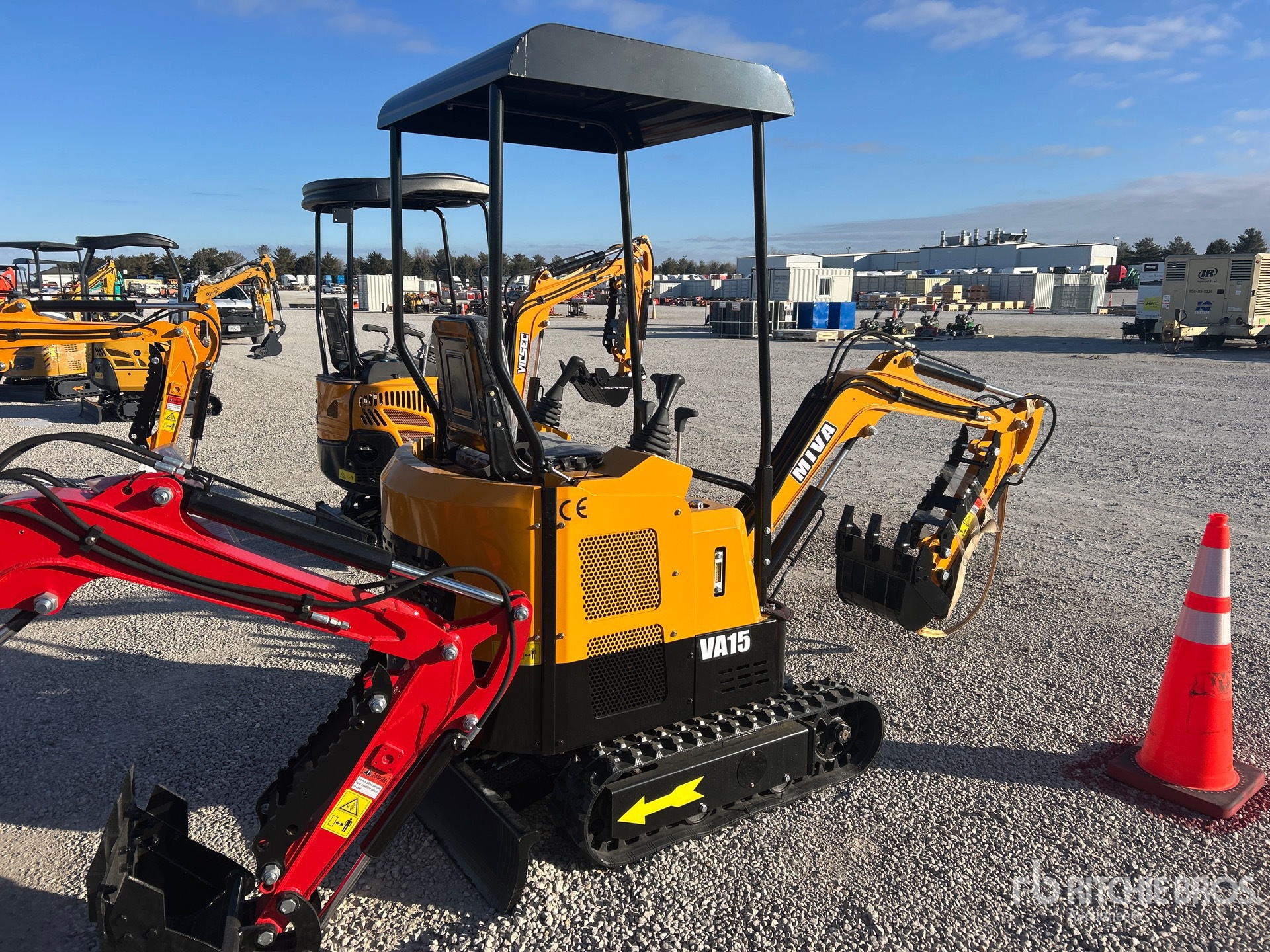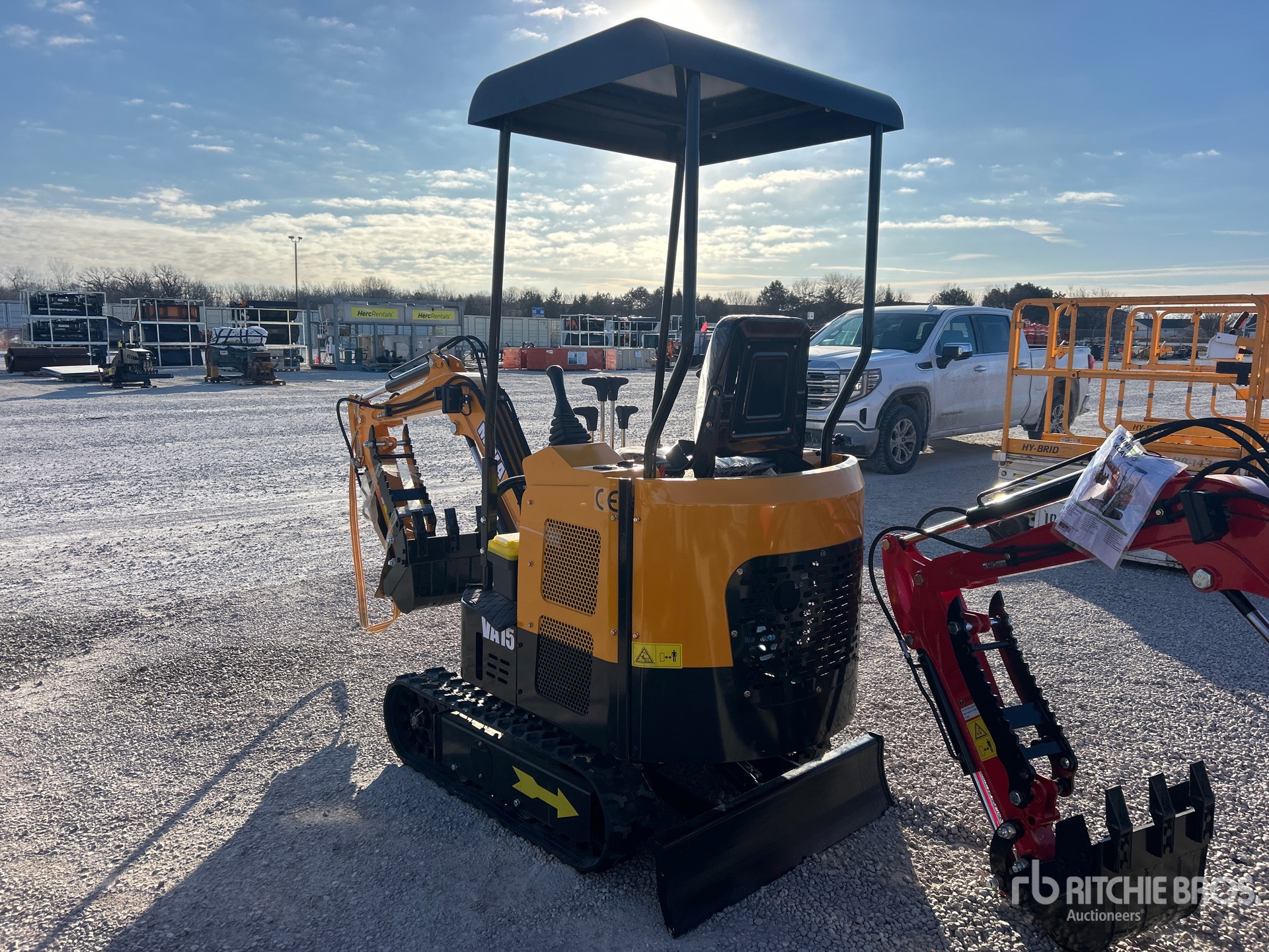 2 ft 7 in Stick, Auxiliary Hydraulic Plumbing, Backfill Blade, 7 in Rubber Tracks, 14 in Digging Bucket, Manual Thumb