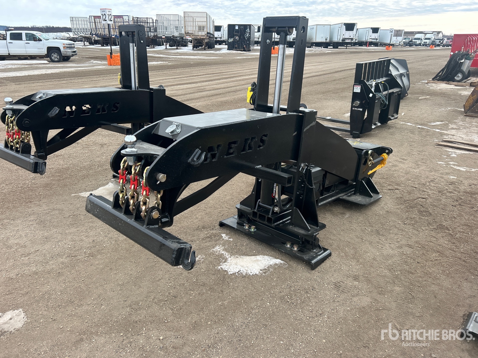 치수는 추정치로만 제공됩니다. 실제 적재 치수는 트럭/트레일러 높이 및 적재된 장비 구성/위치에 따라 달라질 수 있습니다. 안전한 운송을 위해 경매 현장에서 방출하기 전 적재 치수를 측정하는 것은 구매자의 책임입니다. 모든 치수는 구매자가 확인해야 합니다. 운송 시 이 치수에 의존해서는 안 됩니다.