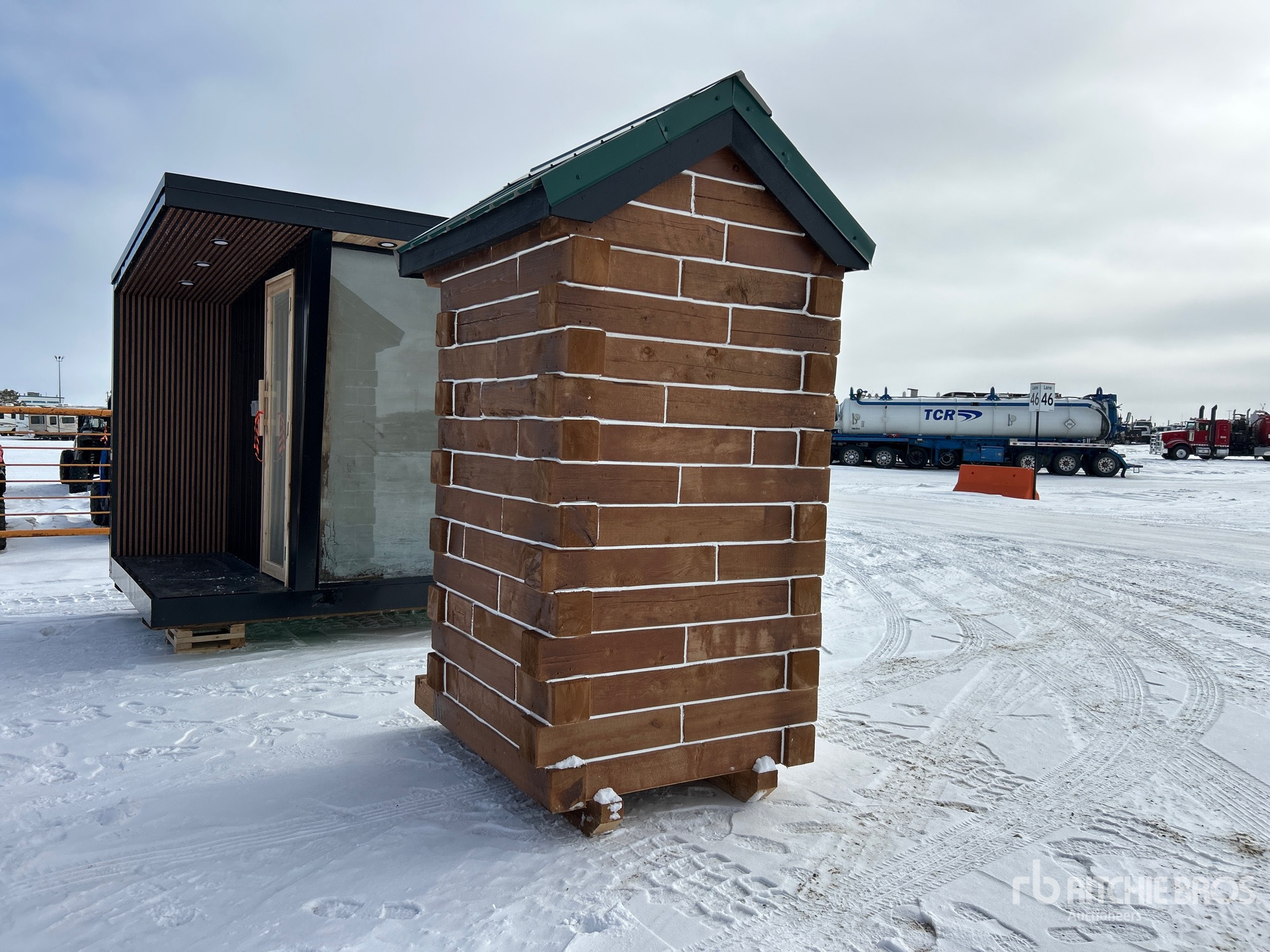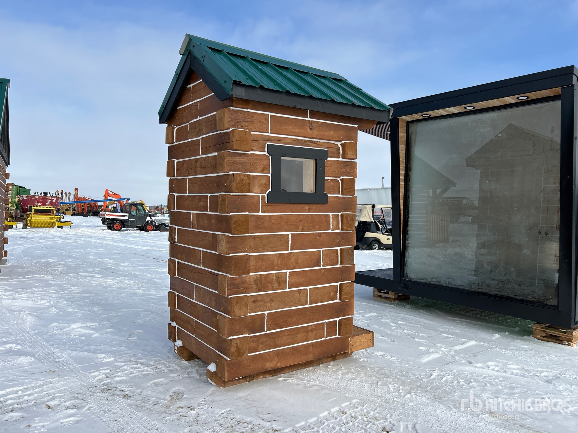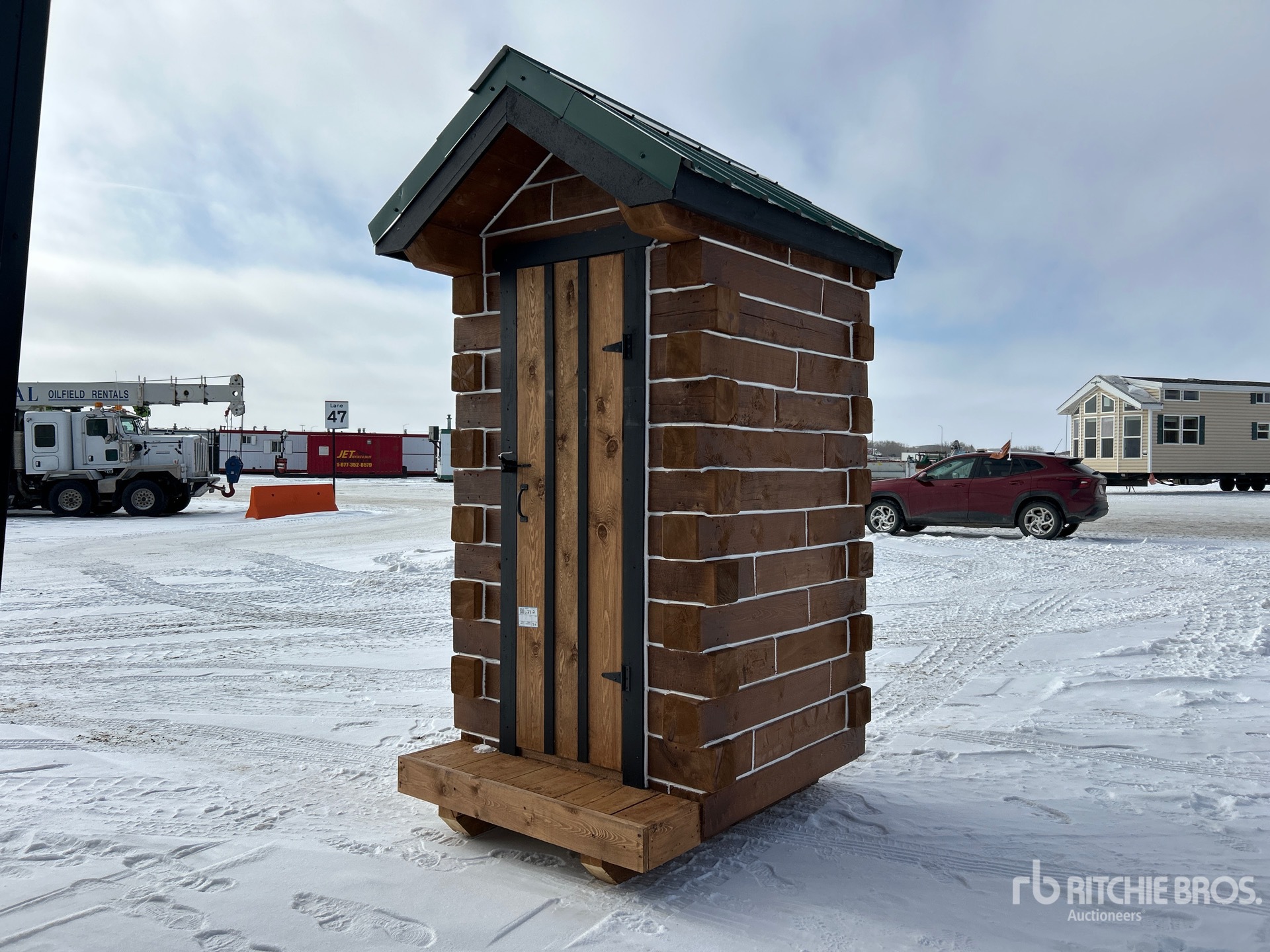 4 ft x 4 ft Skid-Mounted Log Outhouse (Unused)
