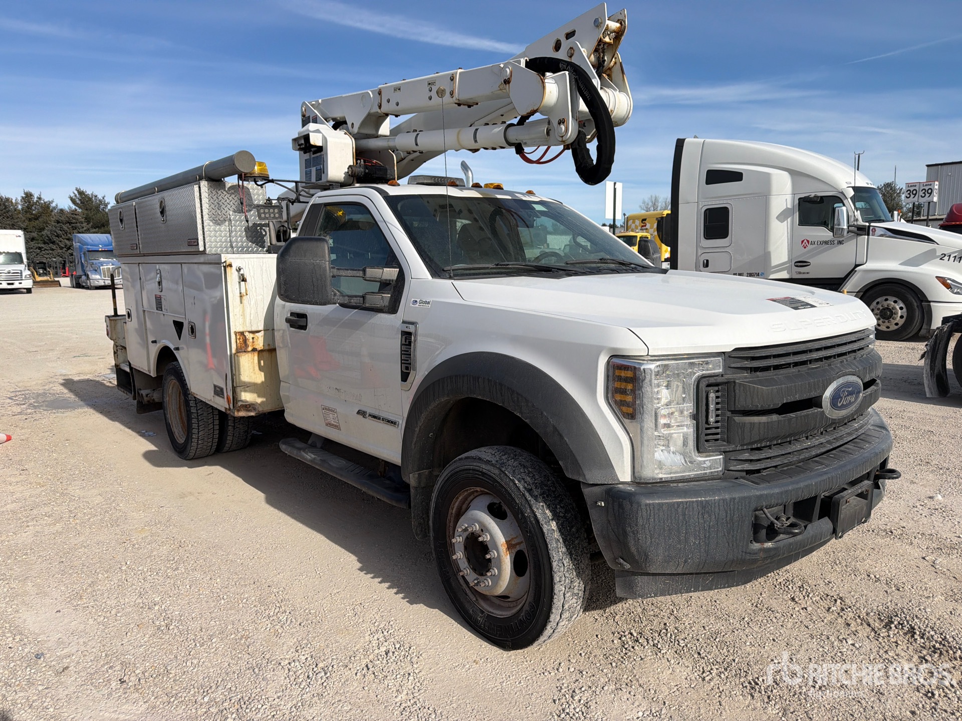 Power stroke V8 6.7 L Diesel Engine, 2018 US EPA Label, Ford motor company Automatic Transmission, 7000 lb Front Axle, 13660 lb Rears, 18000 lb GVWR, 225/70R19.5 Front Tires, 225/70R19.5 Rear Tires, Spring Suspension, PTO, Center Mounted, One-Person Articulating-Telescopic Boom, Utility Body, Receiver hitch