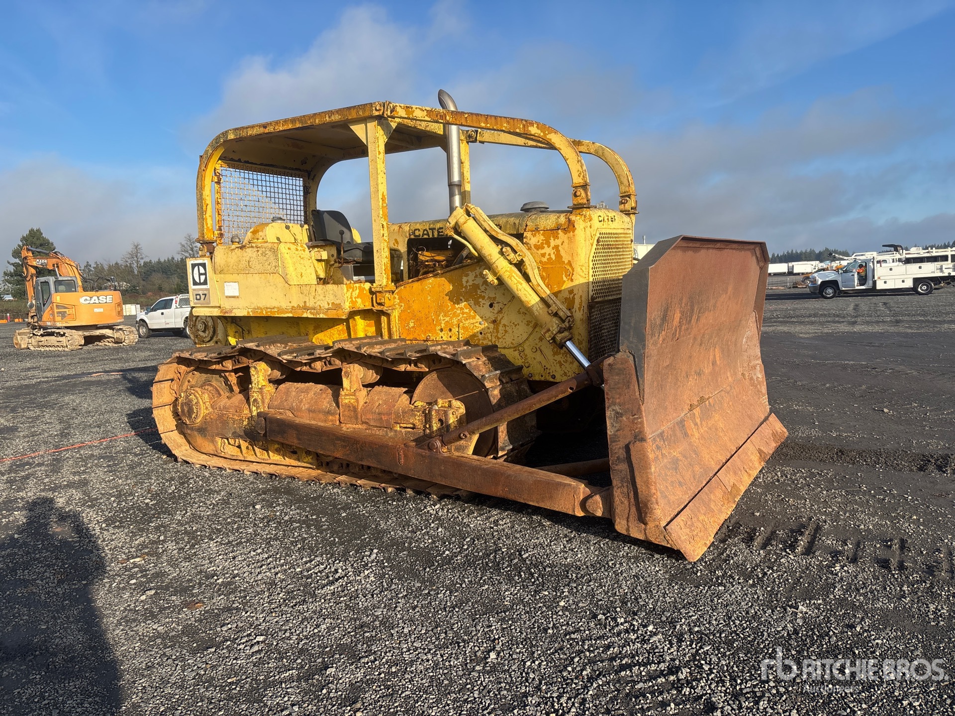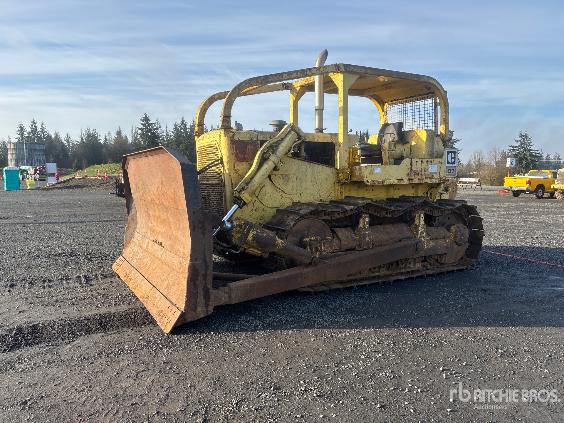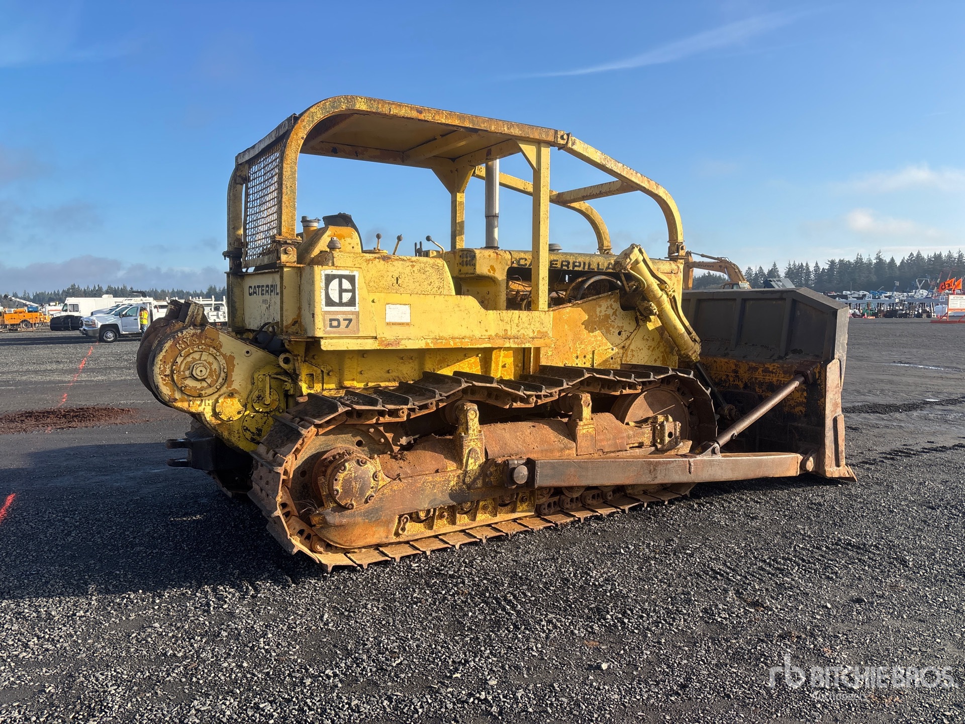 Open Operator Station, Sweeps, 132 in Wide Straight Blade w/ Single Tilt, 22 in Single Grouser Track Shoes, Hyster D7H Winch