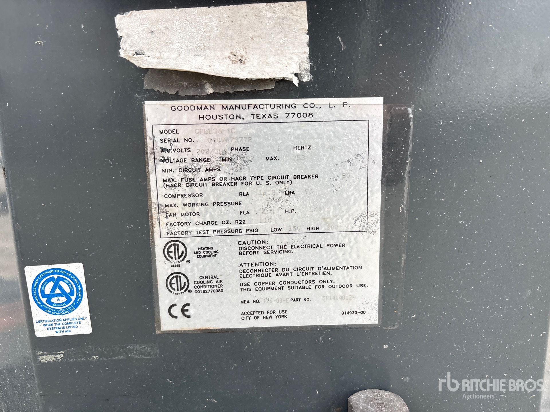 자세한 장비 정보는 범위가 제한되어 있으며, Ritchie Bros. Auctioneers에서는 본 문서에 명시된 항목 이외의 장비 구성요소나 측면에 대해서는 검사하지 않았습니다. 명시적으로 언급하지 않는 한, 당사는 장비 또는 그 구성요소와 관련하여 명시적으로나 묵시적으로 어떠한 진술이나 보증을 제공하지 않습니다. 여기에는 기능, 해당 당국이나 규제 기관의 안전 표준 또는 요구 사항의 준수, 특정 용도 적합성, 상업성 등과 관련된 진술 또는 보증을 포함하되 이에 국한되지 않습니다. 입찰하기 전 장비의 상세한 검사를 실시하도록 강력히 권장합니다.