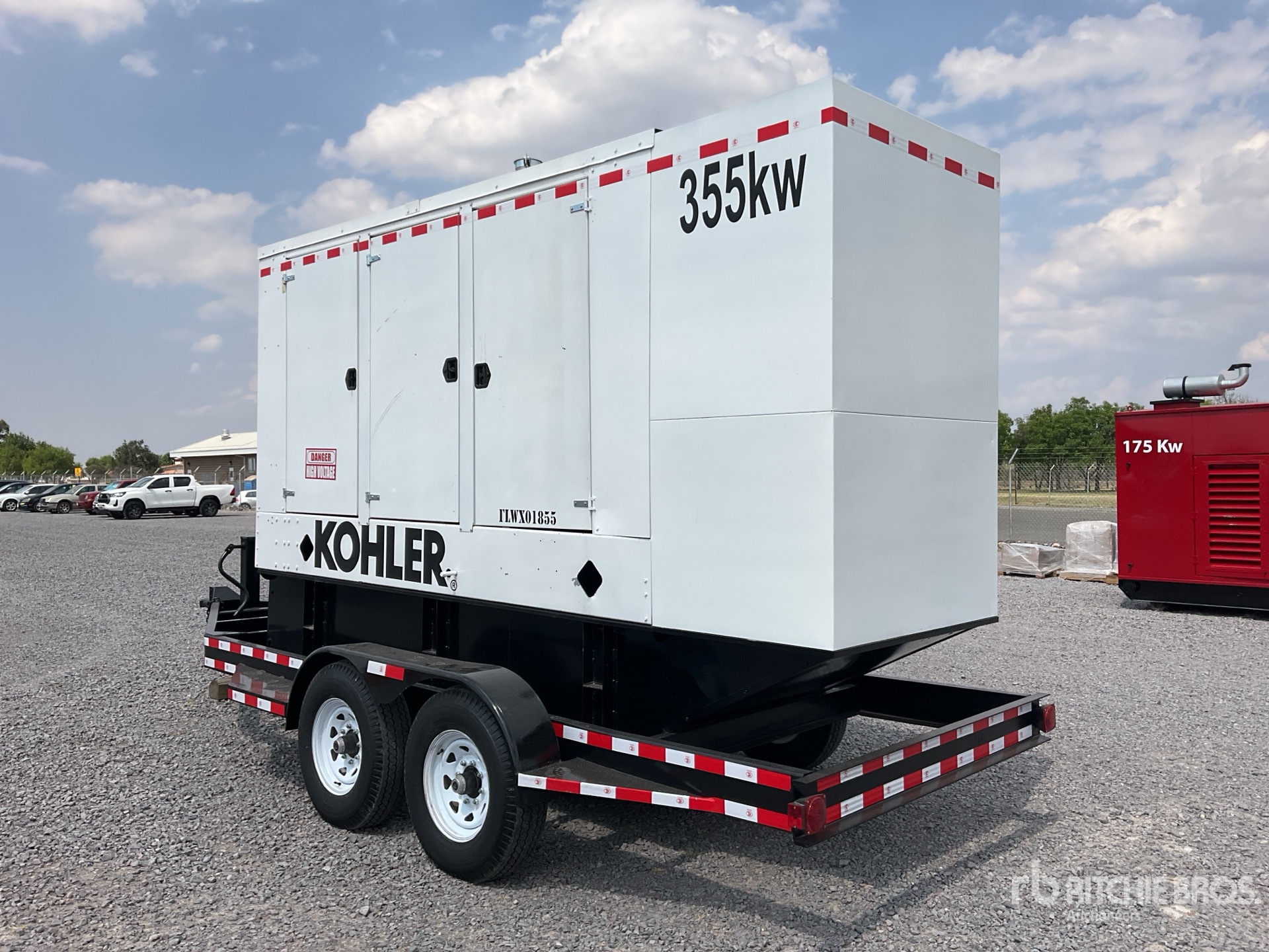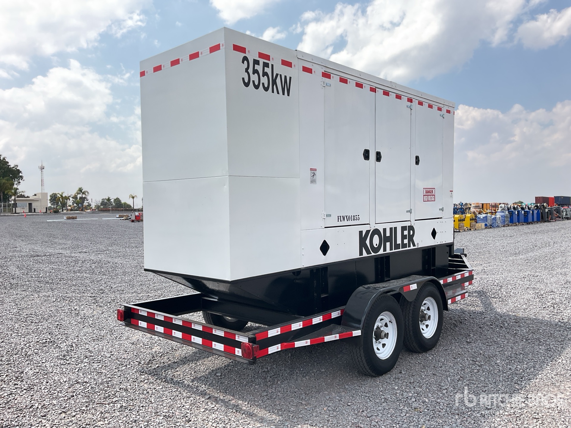 Detroit Series 60 6 Cylinder 550 hp Diesel Engine, 444 kVA/355 kW Rated 3 Phase Output, / 120 V / 240 V Rated Voltage, Sound Attenuated, Bottom Mounted Fuel Tank, Ball Hitch Carrier Trailer