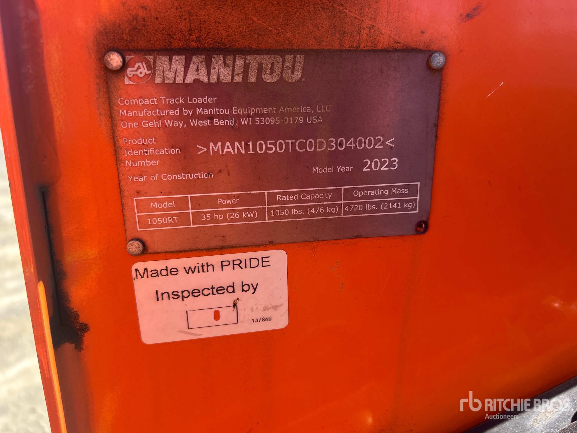 458 hrs-No guarantees made as to actual hours/miles/kilometers; the inspection report reflects what can be visually observed.