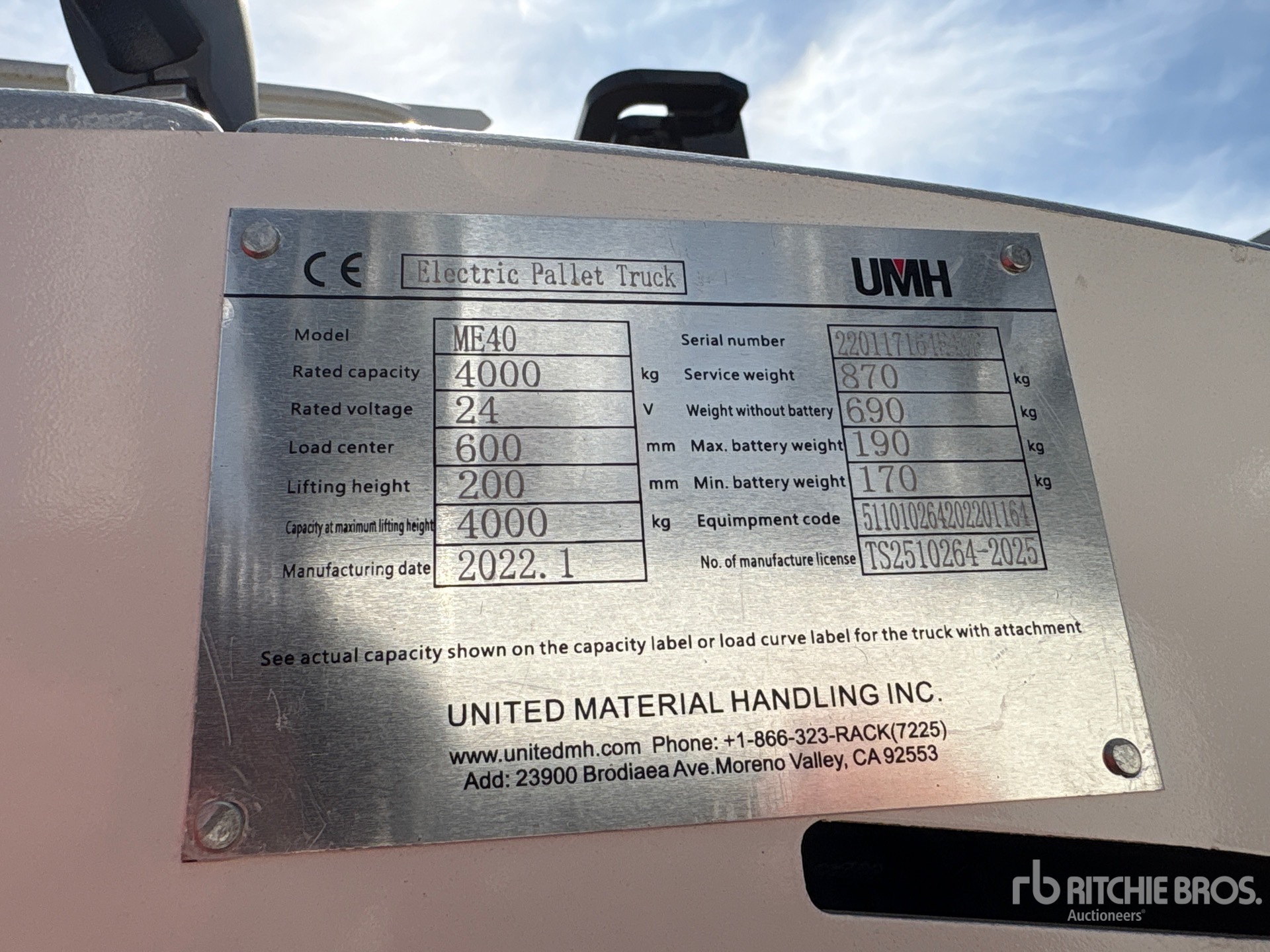 자세한 장비 정보는 범위가 제한되어 있으며, Ritchie Bros. Auctioneers에서는 본 문서에 명시된 항목 이외의 장비 구성요소나 측면에 대해서는 검사하지 않았습니다. 명시적으로 언급하지 않는 한, 당사는 장비 또는 그 구성요소와 관련하여 명시적으로나 묵시적으로 어떠한 진술이나 보증을 제공하지 않습니다. 여기에는 기능, 해당 당국이나 규제 기관의 안전 표준 또는 요구 사항의 준수, 특정 용도 적합성, 상업성 등과 관련된 진술 또는 보증을 포함하되 이에 국한되지 않습니다. 입찰하기 전 장비의 상세한 검사를 실시하도록 강력히 권장합니다.