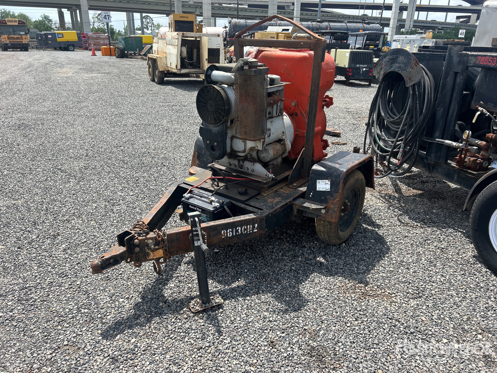 4 in Intake, 6 in Discharge, Self Priming Centrifugal Water Pump, Hatz D-94099 2 Cylinder Diesel Engine, Ball Hitch Carrier Trailer