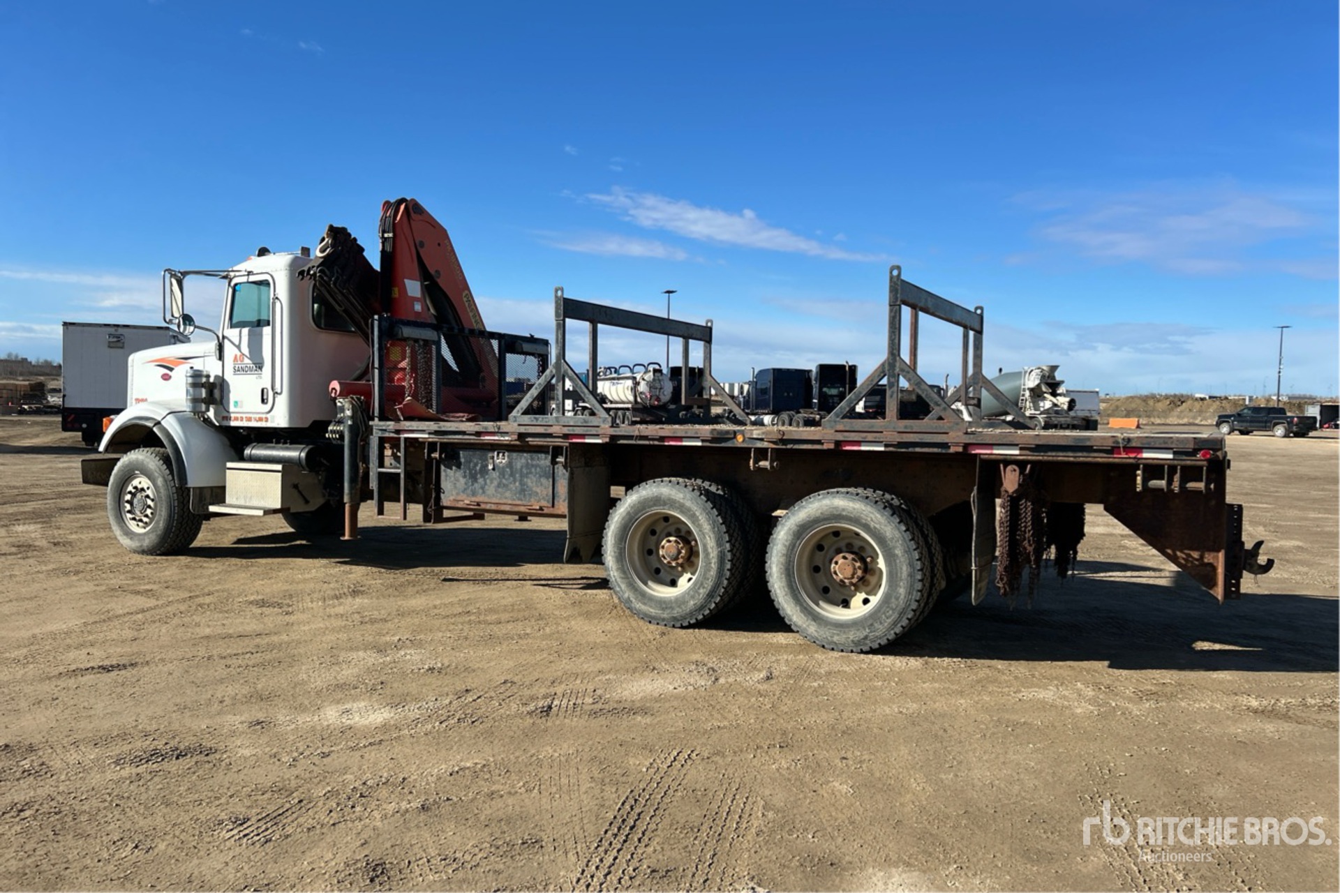 Cummins ISM Engine, 3488 Engine hrs, Engine Brake, Eaton Fuller Transmission, Double Differential Locks, 22000 lb Front Axle, 50000 lb Rears, 72000 lb GVWR, Air Ride Cab, Aluminum Wheels, 425/65R22.5 Front Tires, 11R24.5 Rear Tires, Double Frame, Walking Beam Suspension, 276 in Wheelbase, PTO, 4 Section Boom, Straight Down Outriggers, 21 ft x 98 in Bed, Pintle Hitch