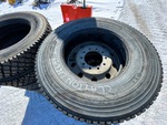 Some Tires with Wheels, (2) new tires, (8) used tires, (6) aluminum rims, (1) steel rim