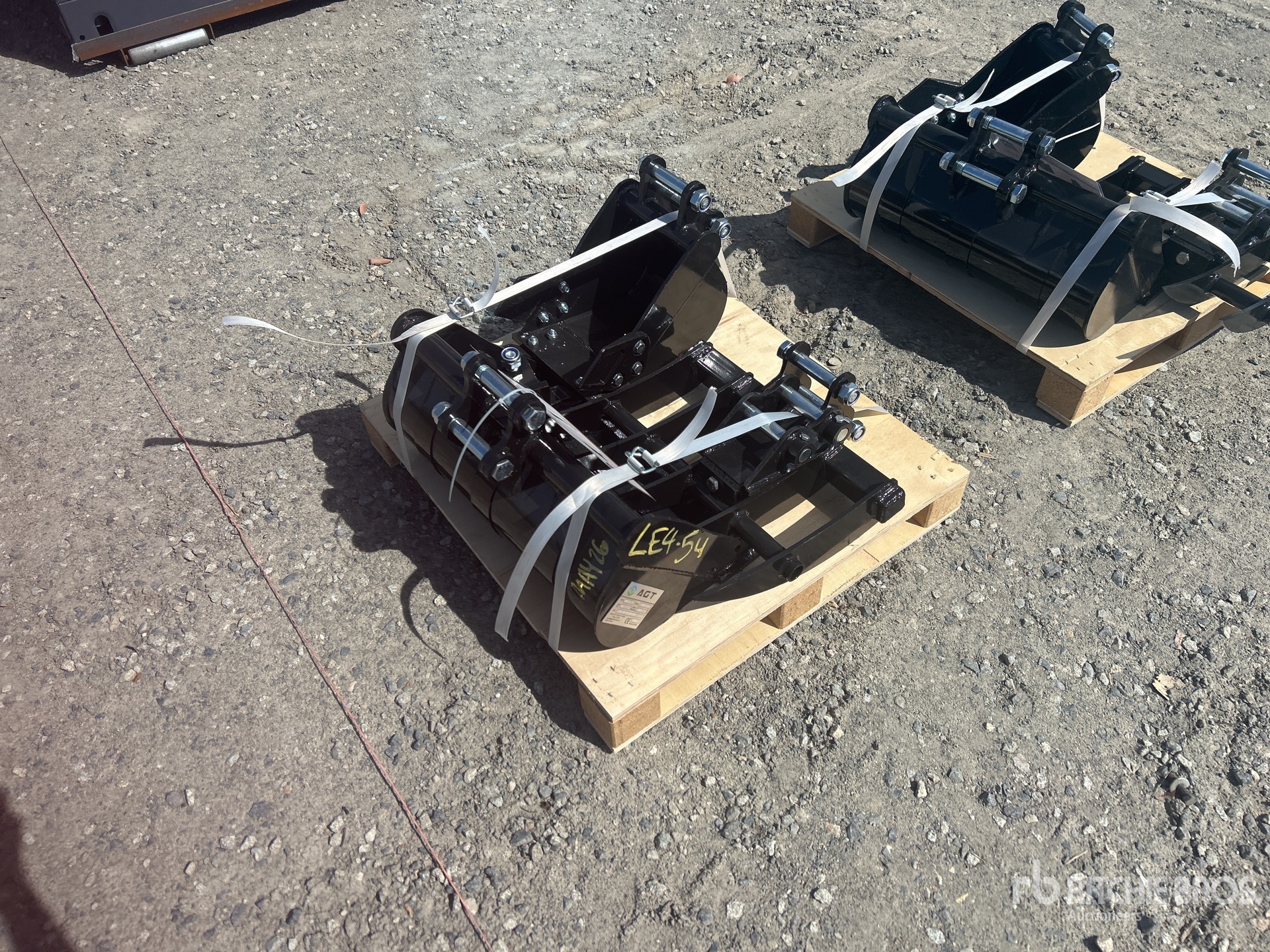 (1) 10 in Digging Bucket, (1) 24 in Cleanup Bucket, (1) Quick Coupler, (1) Ripper, (1) Rake, Item is new/unused