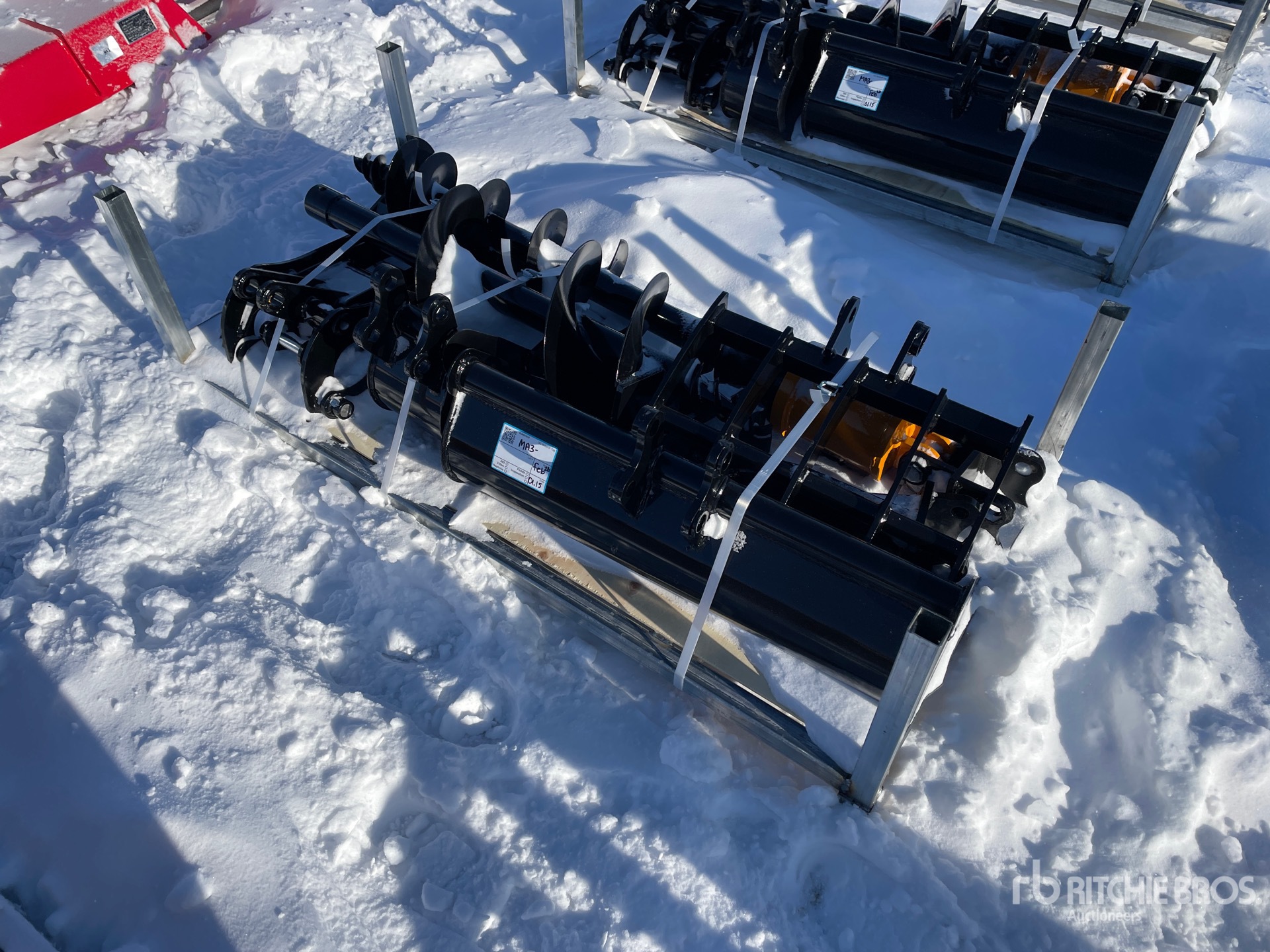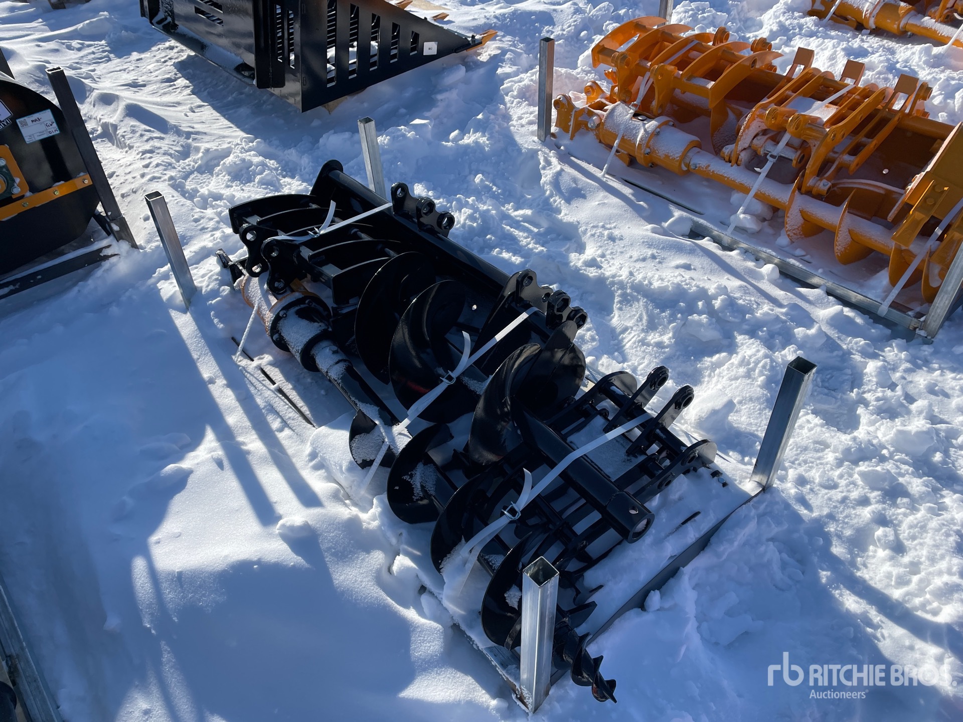 (1) Rake, (1) Ripper, (1) Grapple, (1) Auger w/ 12 in & 16 in Auger Bits, (1) 8 in Narrow Bucket, (1) 24 in Bucket, (1) 32 in Bucket