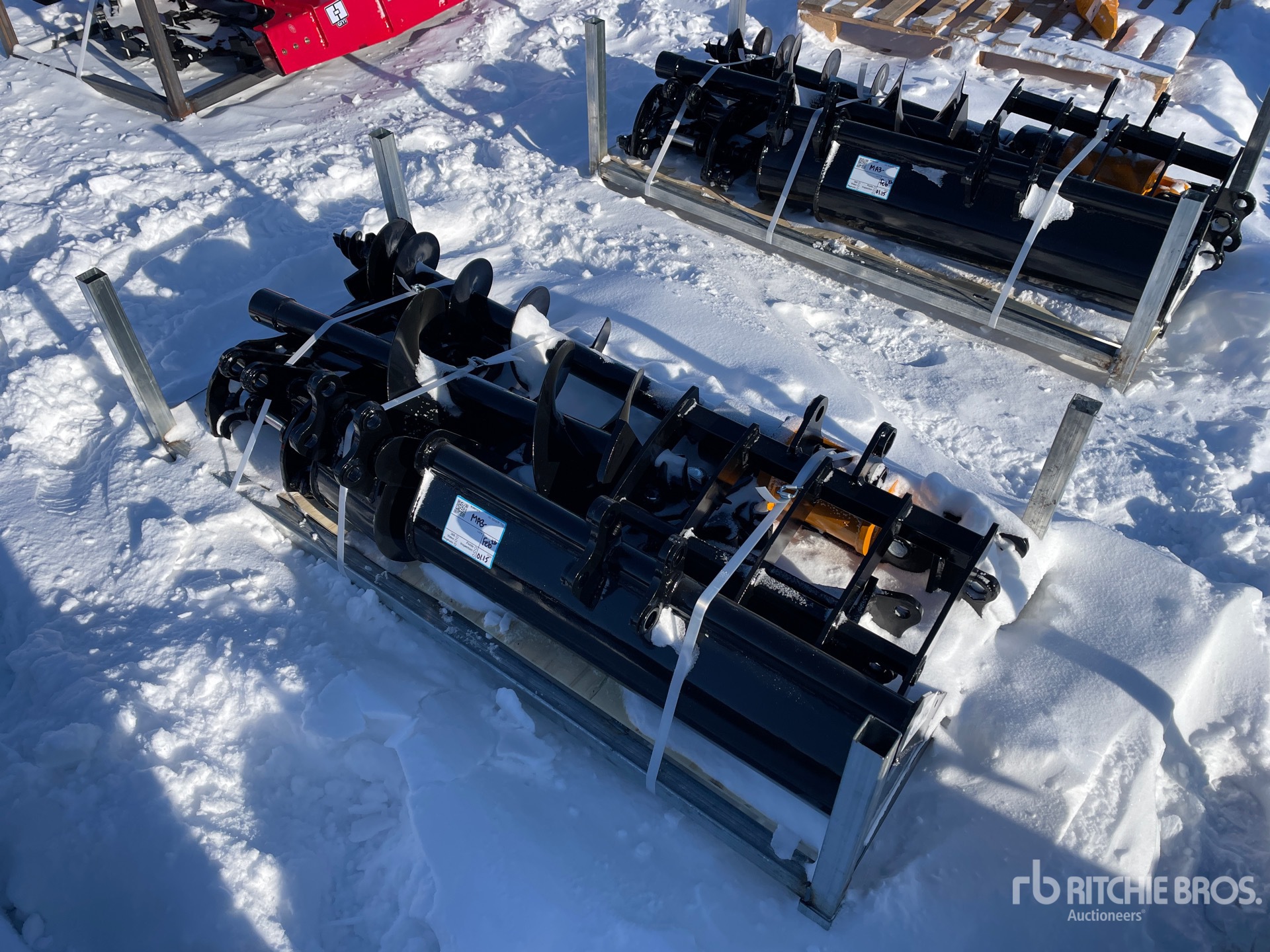 (1) Rake, (1) Ripper, (1) Grapple, (1) Auger w/ 12 in & 16 in Auger Bits, (1) 8 in Narrow Bucket, (1) 24 in Bucket, (1) 32 in Bucket