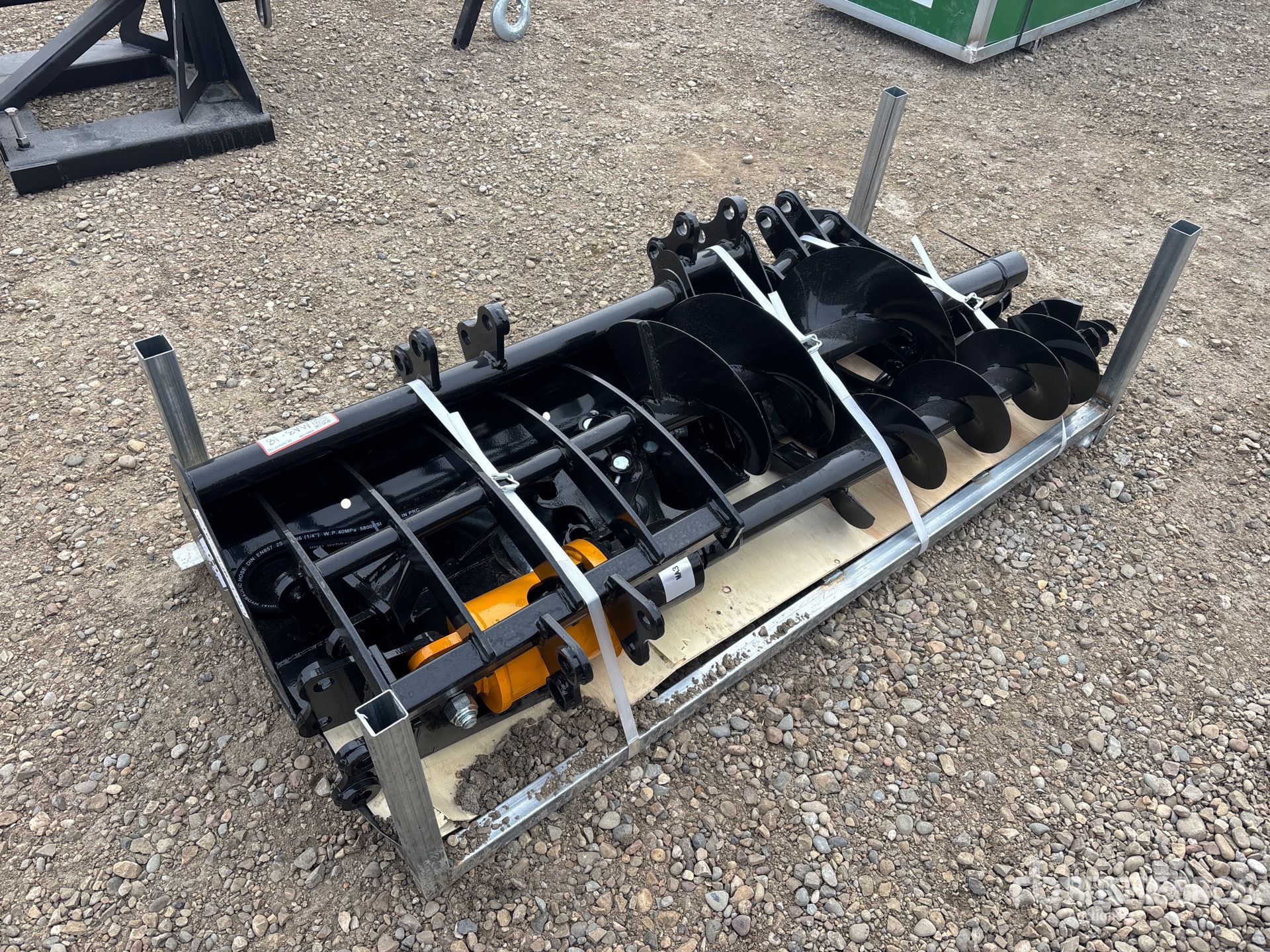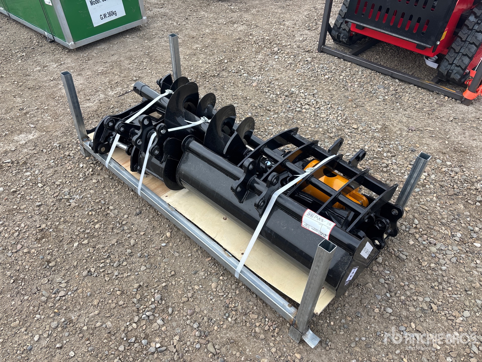 (1) Rake, (1) Ripper, (1) Grapple, (1) Auger w/ 12 in & 16 in Auger Bits, (1) 8 in Narrow Bucket, (1) 24 in Bucket, (1) 32 in Bucket