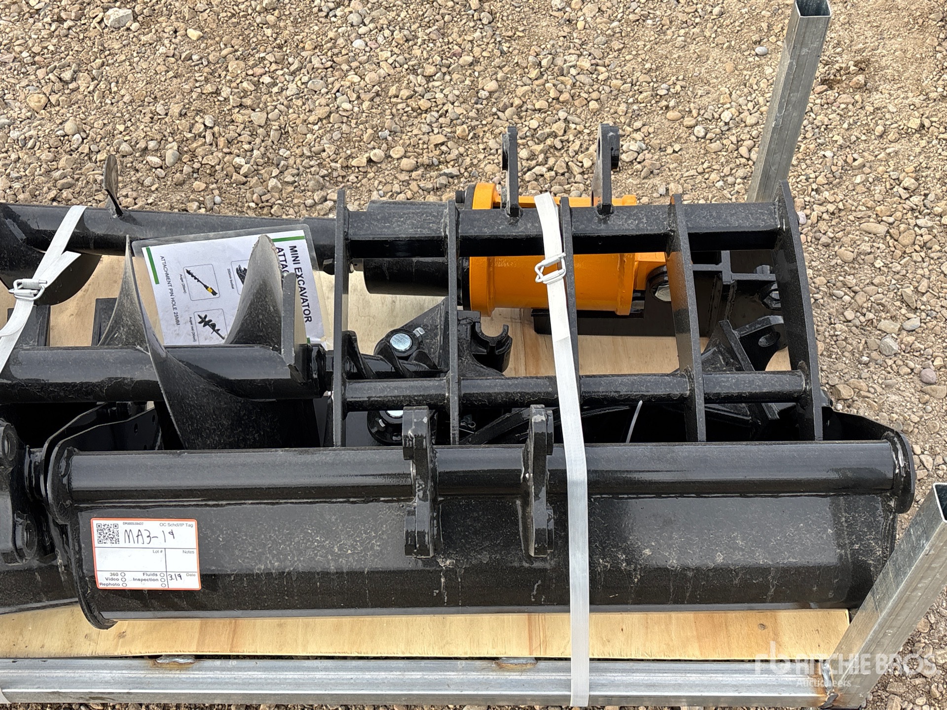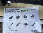 (1) Rake, (1) Ripper, (1) Grapple, (1) Auger w/ 12 in & 16 in Auger Bits, (1) 8 in Narrow Bucket, (1) 24 in Bucket, (1) 32 in Bucket