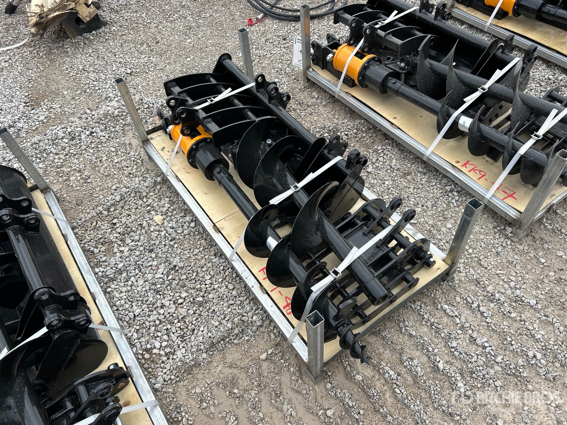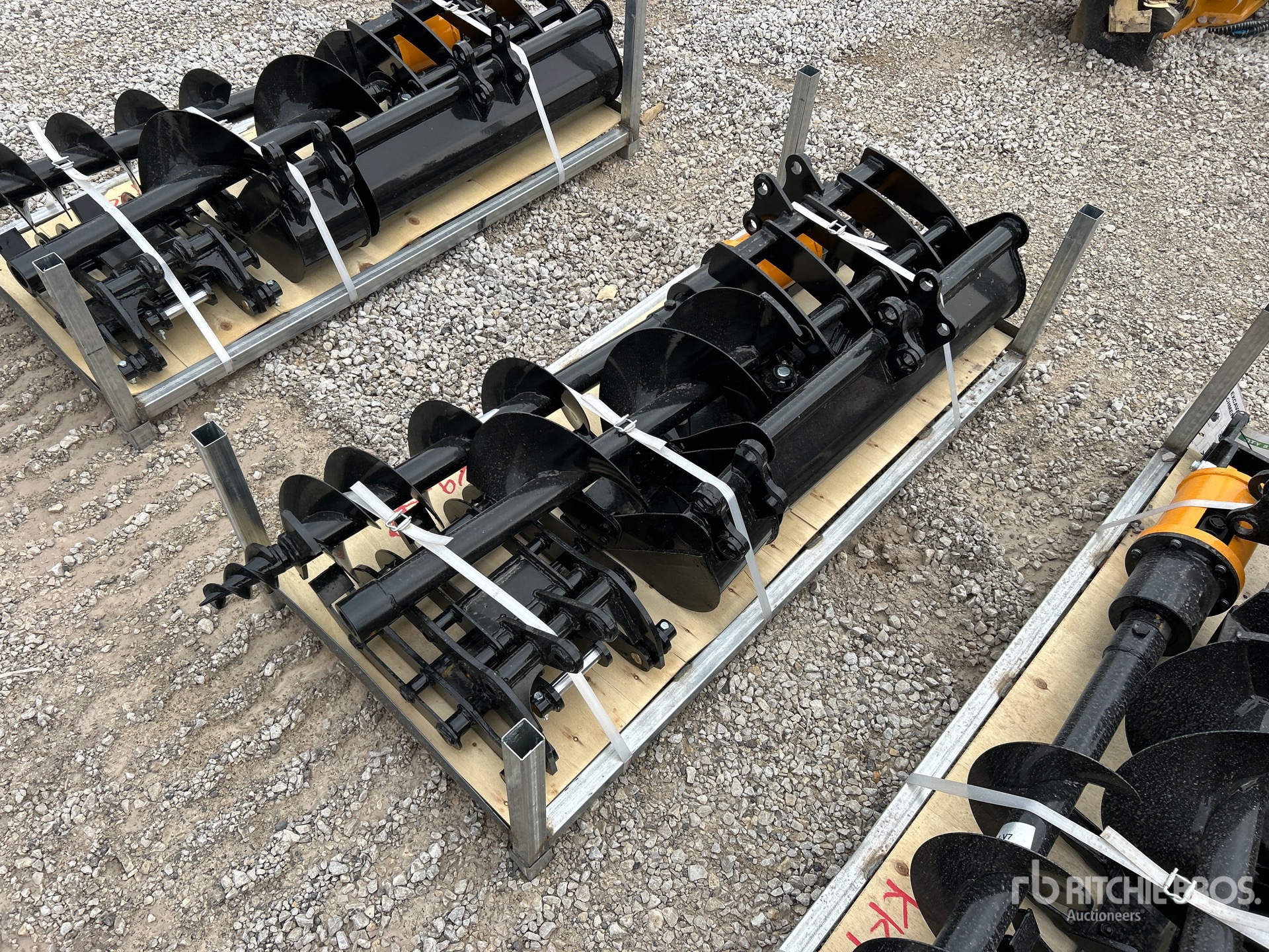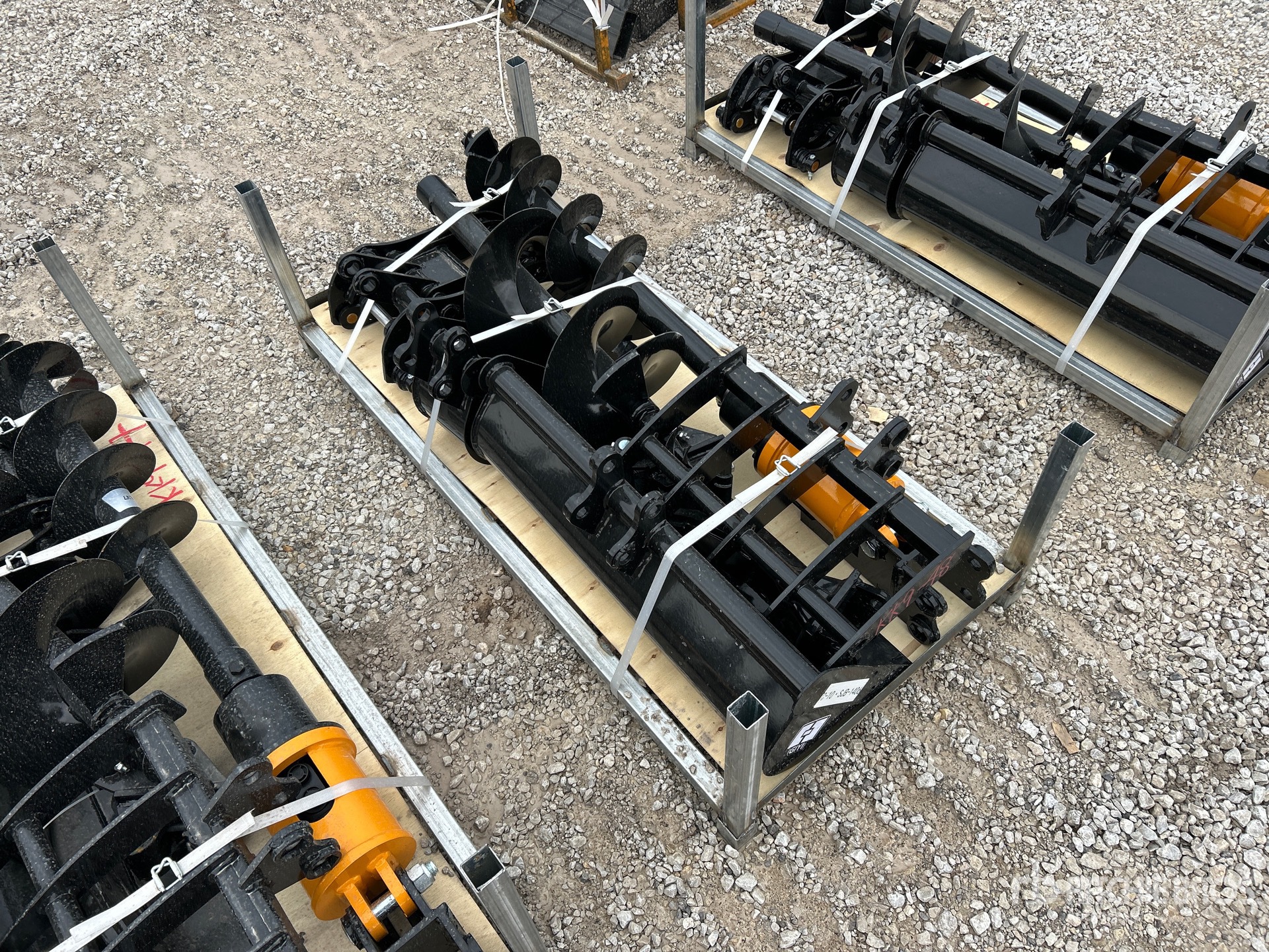 (1) Rake, (1) Ripper, (1) Grapple, (1) Auger w/ 12 in & 16 in Auger Bits, (1) 8 in Narrow Bucket, (1) 24 in Bucket, (1) 32 in Bucket