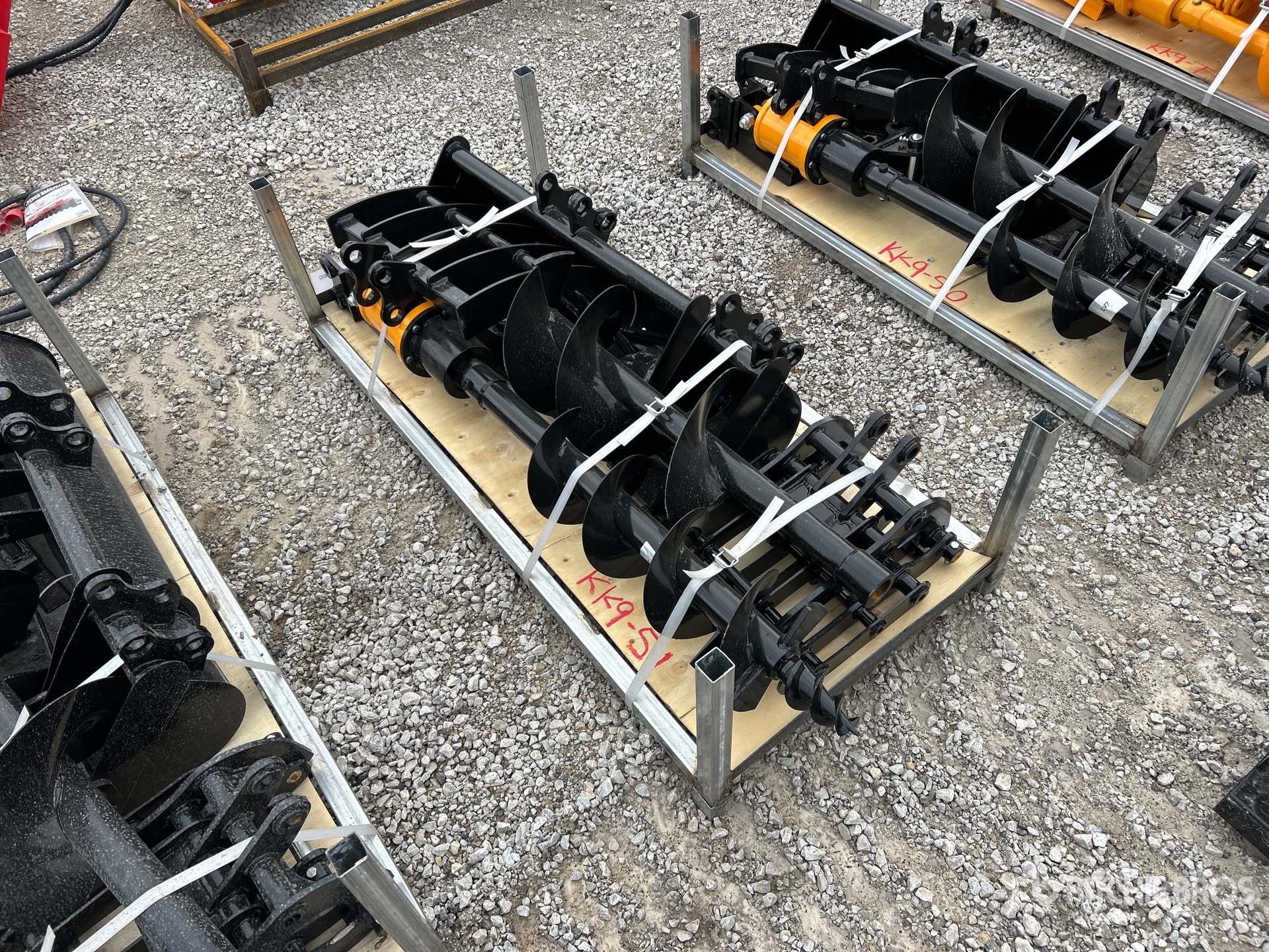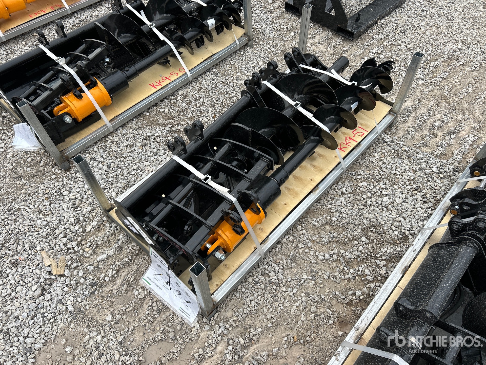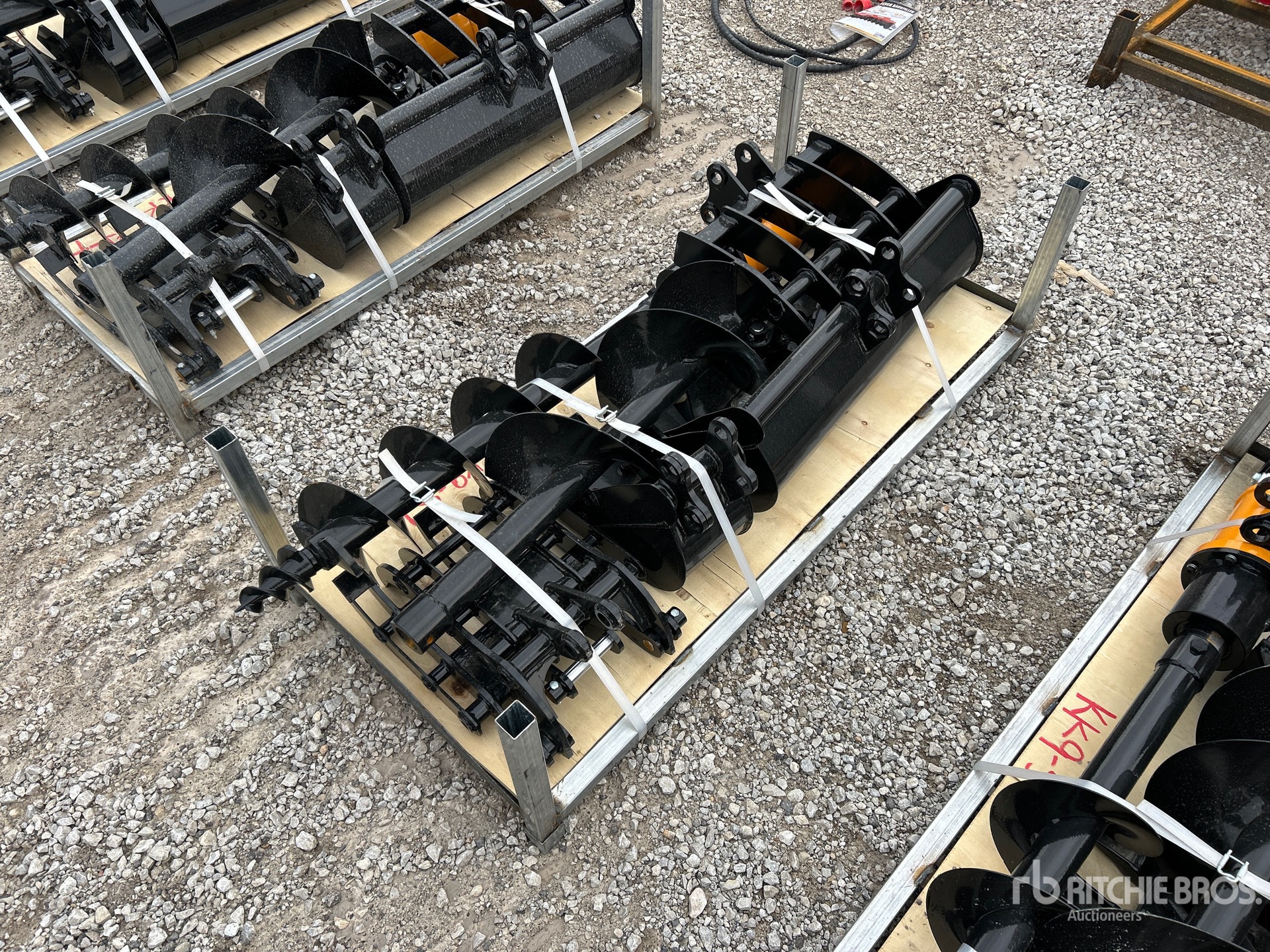 (1) Rake, (1) Ripper, (1) Grapple, (1) Auger w/ 12 in & 16 in Auger Bits, (1) 8 in Narrow Bucket, (1) 24 in Bucket, (1) 32 in Bucket