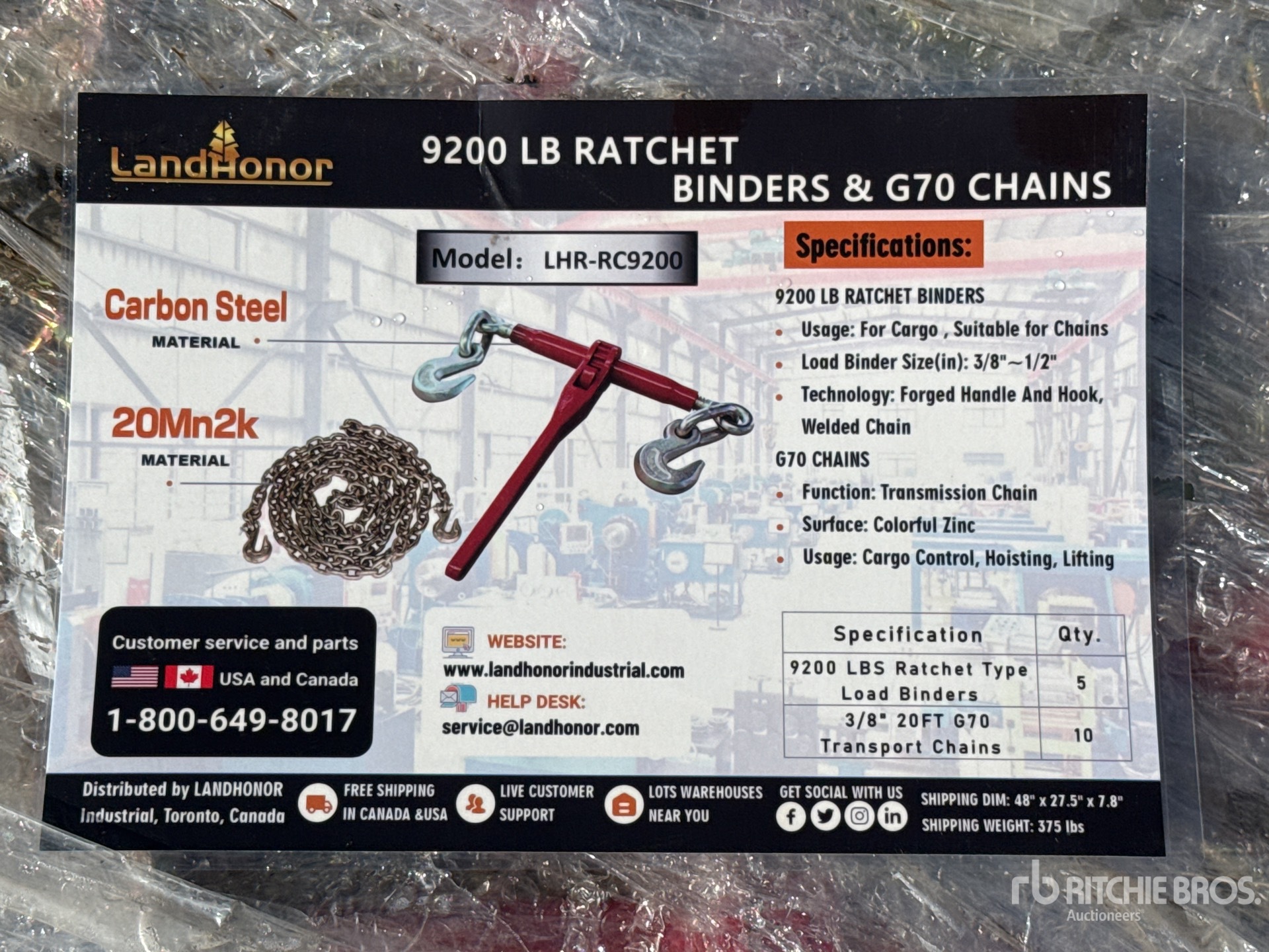Quantity of (15) 9200 lbs Rachet and Chain Sets (Unused) - Fits LandHonor LHR-RC9200